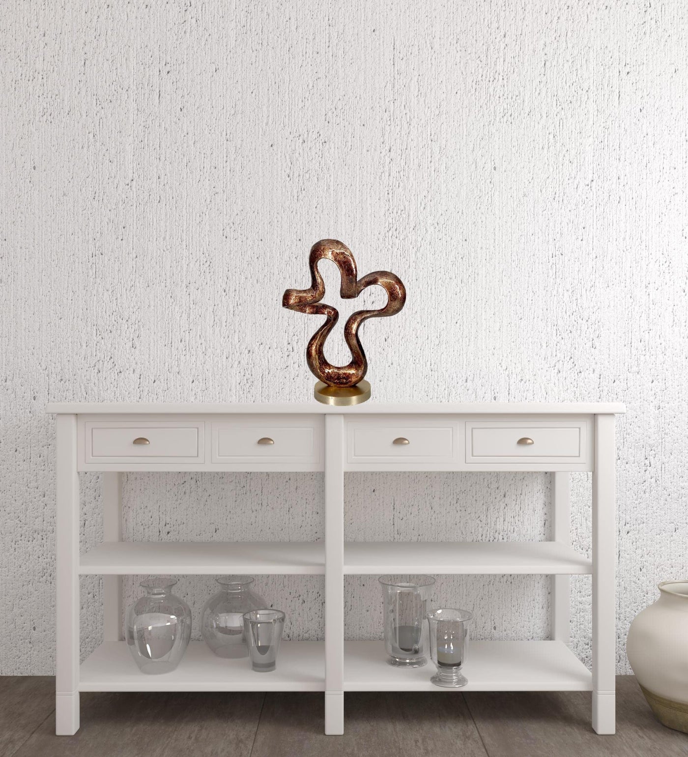 Bring some sizzle to your space with this eye-catching 16-inch brown and gold aluminum abstract sculpture. The unique brown and gold color of this high-quality aluminum accent will look great in almost any space. This sculpture is a great tabletop accent for your coffee table, counter, bookshelf, mantel, or even dining room table. It is a perfect match for those who love an updated look and feel. Use this piece as a bookshelf decoration, on your desk, coffee table, or anywhere in your home. 15.5'H x 5.75'W x 11.5'D
