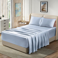 Homiest 4Pcs Extra Deep Pocket Satin Sheets Queen Size Bed Set, 18-24 Inch Deep Pocket Bed Sheets Baby Blue Satin Sheet Set, Sil