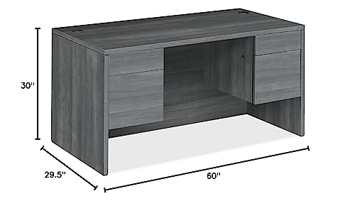 Well-built, cost-effective wood furniture is the perfect solution for a growing business. Square edges and full modesty panels give this series a clean, streamlined look. Durable, easy-care thermal-fused laminate resists scratches and stains. Desks and credenzas feature one box and one file drawer in each pedestal. File drawers extend fully on long-lasting, steel ball-bearing suspensions and include hangrails for letter-size or legal-size storage. Desks, returns and bridges offer grommets to route and hide wires and cables. Furniture is equipped with interchangeable core-removable locks to make rekeying quick and easy. All furniture units are sold separately.