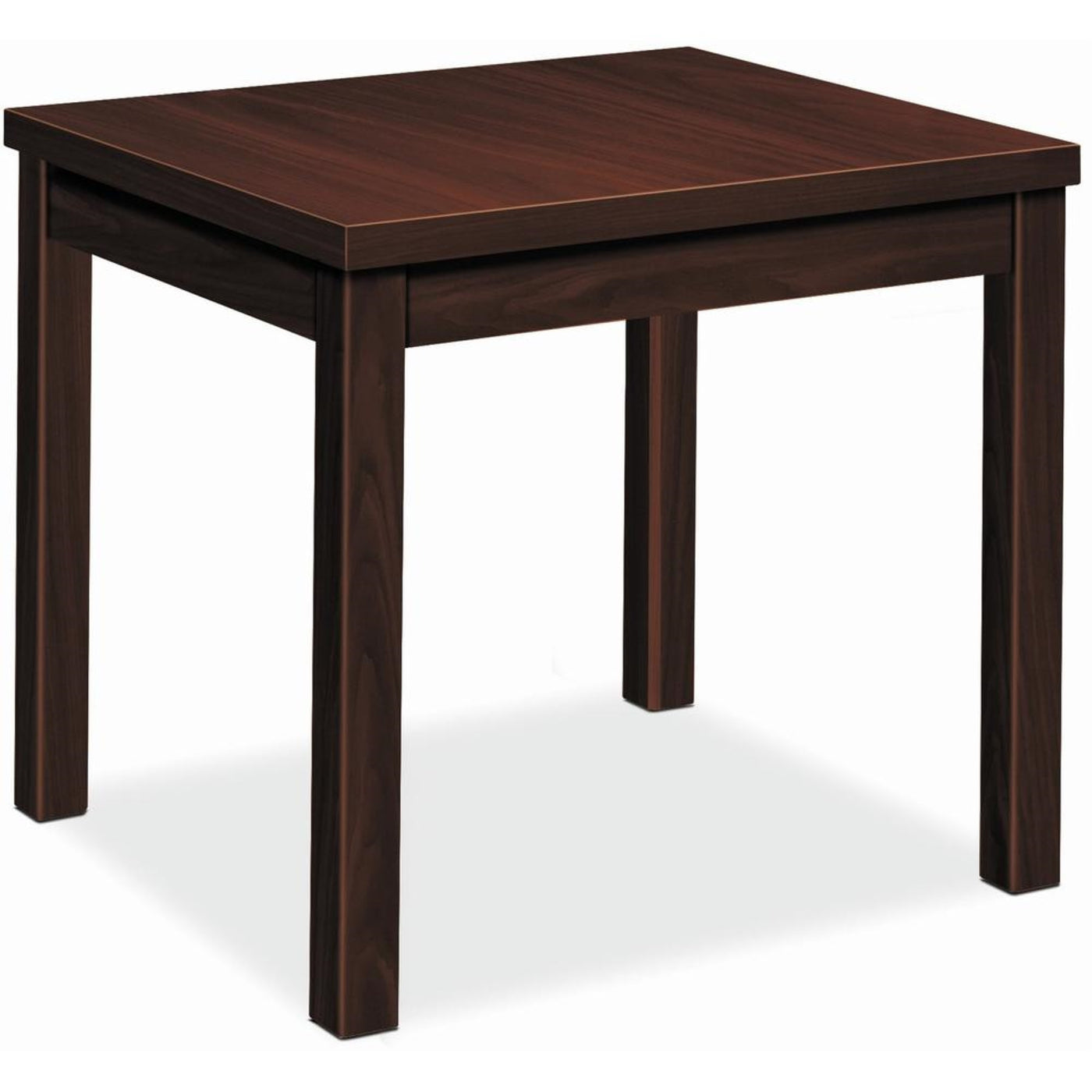 End Table Features Top-Over-Apron And Square Corner Detail That Complements Many Different Furniture Designs. It Is Ideal For High-Traffic Areas Such As Reception Rooms And Lounges. Top And Aprons Are Made Of Abrasion-Resistant, Stain-Resistant, Thermal-Fused Mahogany Laminate Over Durable, 1-1/8 Thick, Solid-Core, High-Density Particleboard. End Table Meets Or Exceeds Applicable Ansi/Bifma Standards.