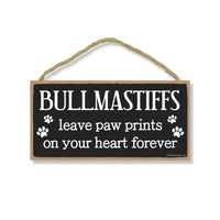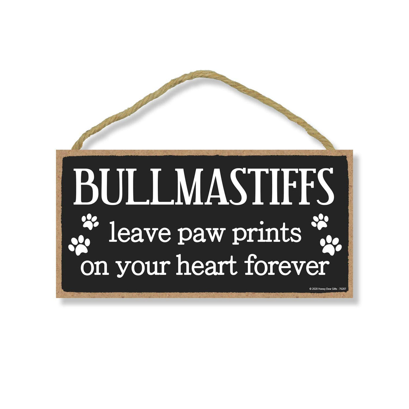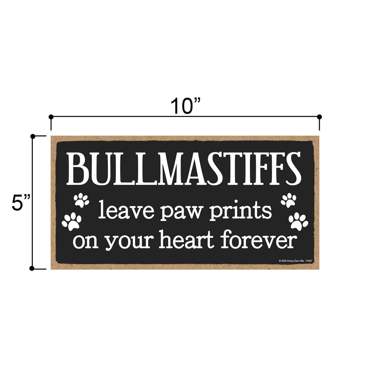 Honey Dew Gifts Bullmastiffs Leave Paw Prints, Wooden Pet Memorial Home Decor, Decorative Dog Bereavement Wall Sign, 5 Inch By 1