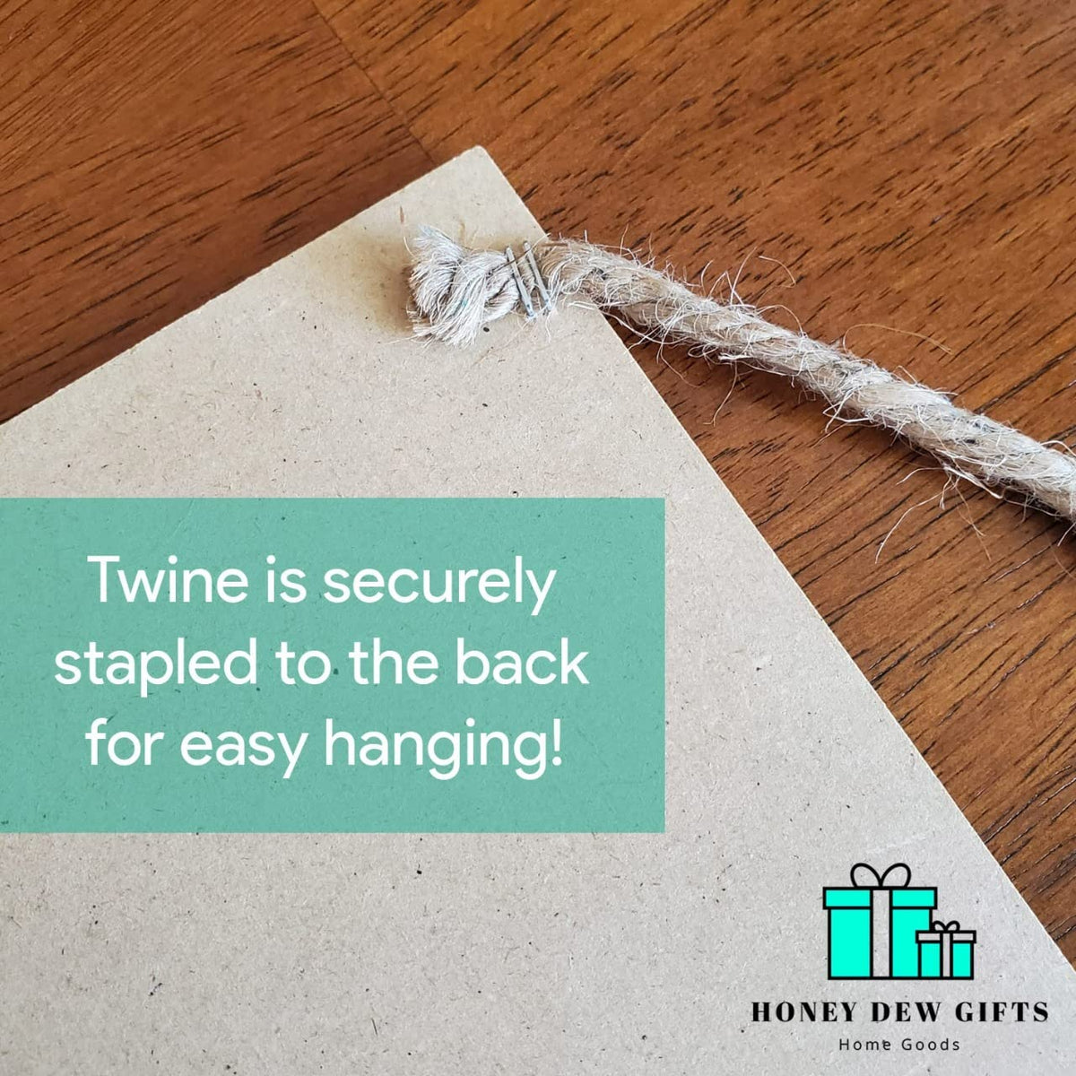 Q: How can I hang the memorial sign?A: The sign features a sturdy twine hanger that is securely stapled at the back, making it easy to display in any indoor location.