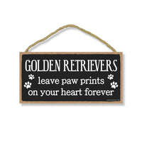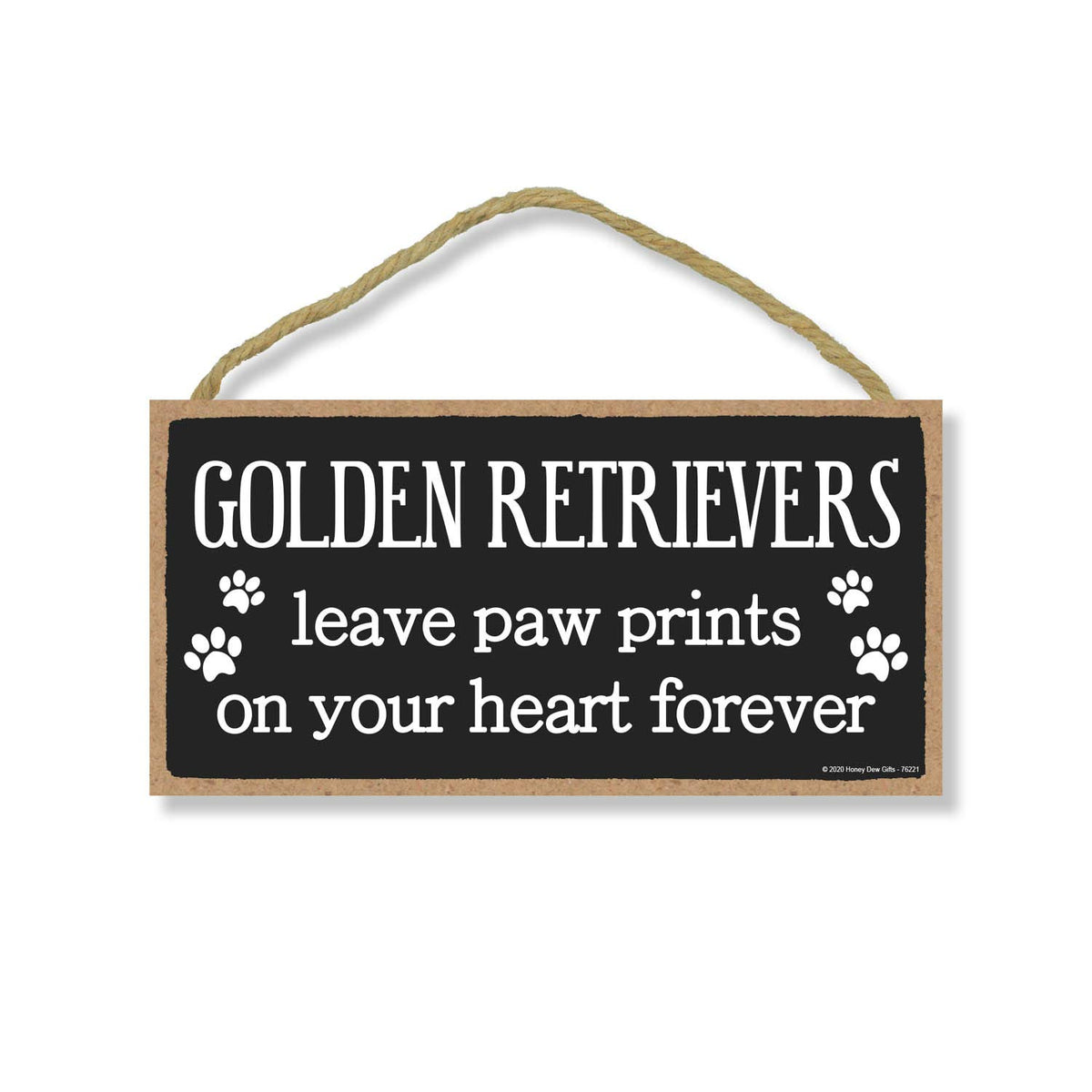 Honey Dew Gifts Golden Retrievers Leave Paw Prints, Wooden Pet Memorial Home Decor, Decorative Dog Bereavement Wall Sign, 5 Inch