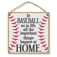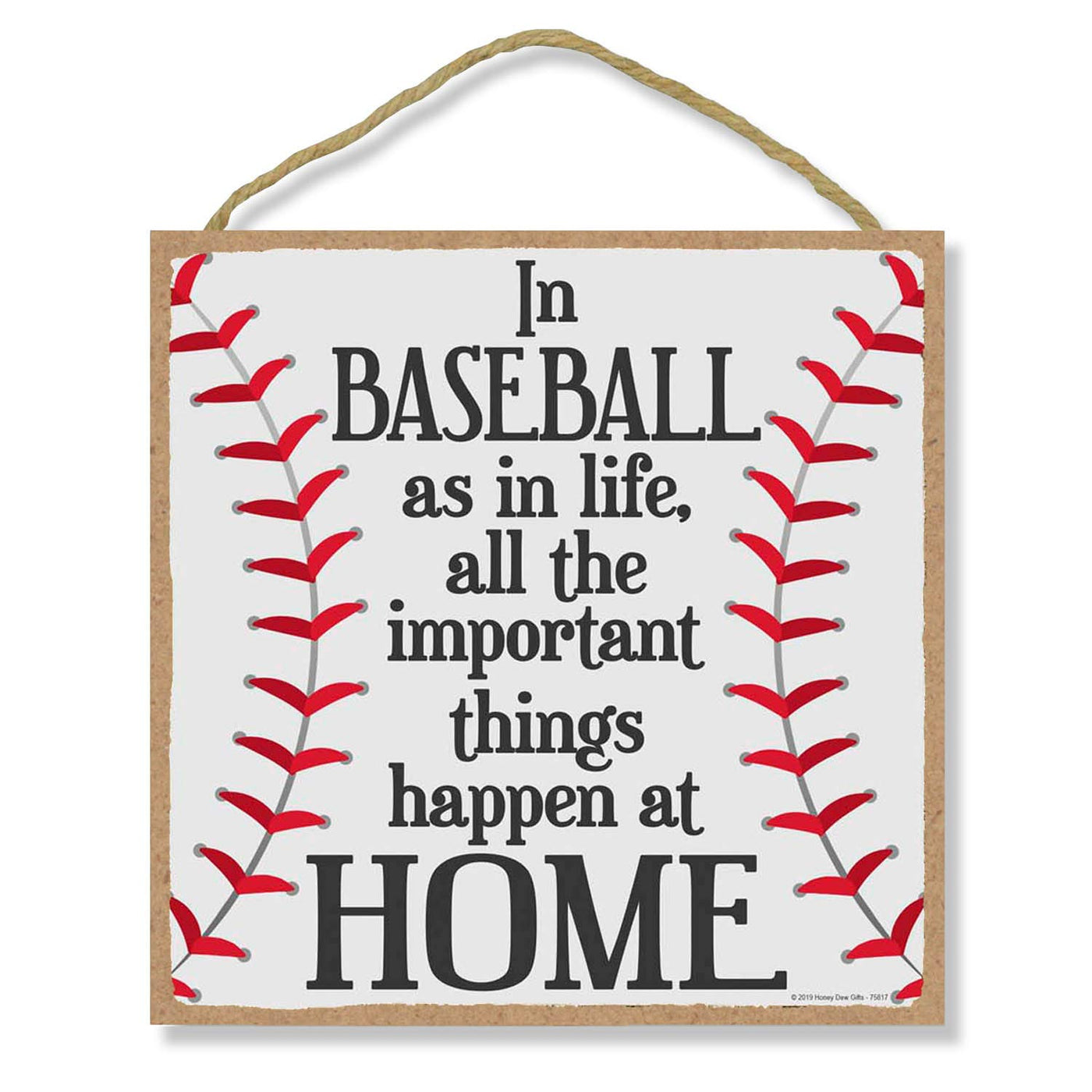 Honey Dew Gifts Home Sign, In Baseball As In Life Important Things Happen At Home 10 Inch By 10 Inch Hanging Wall Baseball Decor