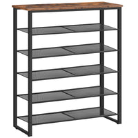 Hoobro 6 Tier Shoe Rack, For 18-24 Pairs Of Shoes, Large Capacity Shoe Storage Shelf Made Of Sturdy Metal And Quality Particleboard, This Shoe Rack Has Lengthy Life Spans. With 6 Levels, It Offers Enough Space For The Shoes Of The Whole Family. In Addition, The Shoe Storage Organizer Has A Wooden Top That Allows You To Place Plants Or Decorations In The Entryway. Package Contents: 1 X Shoe Rack 1 X Accessory Kit 1 X Instructions Specifications: Color: Rustic Brown Material: Particleboard And Metal Product Size: 29.5’’ L X 11.2’’ W X 36.2’’ H Product Weight: 18.1 Lb (8.3 Kg) Max. Static Load Capacity Of Top Shelf: 22 Lb (10 Kg) Max. Static Load Capacity Of Each Mesh Shelf: 11 Lb (5 Kg)