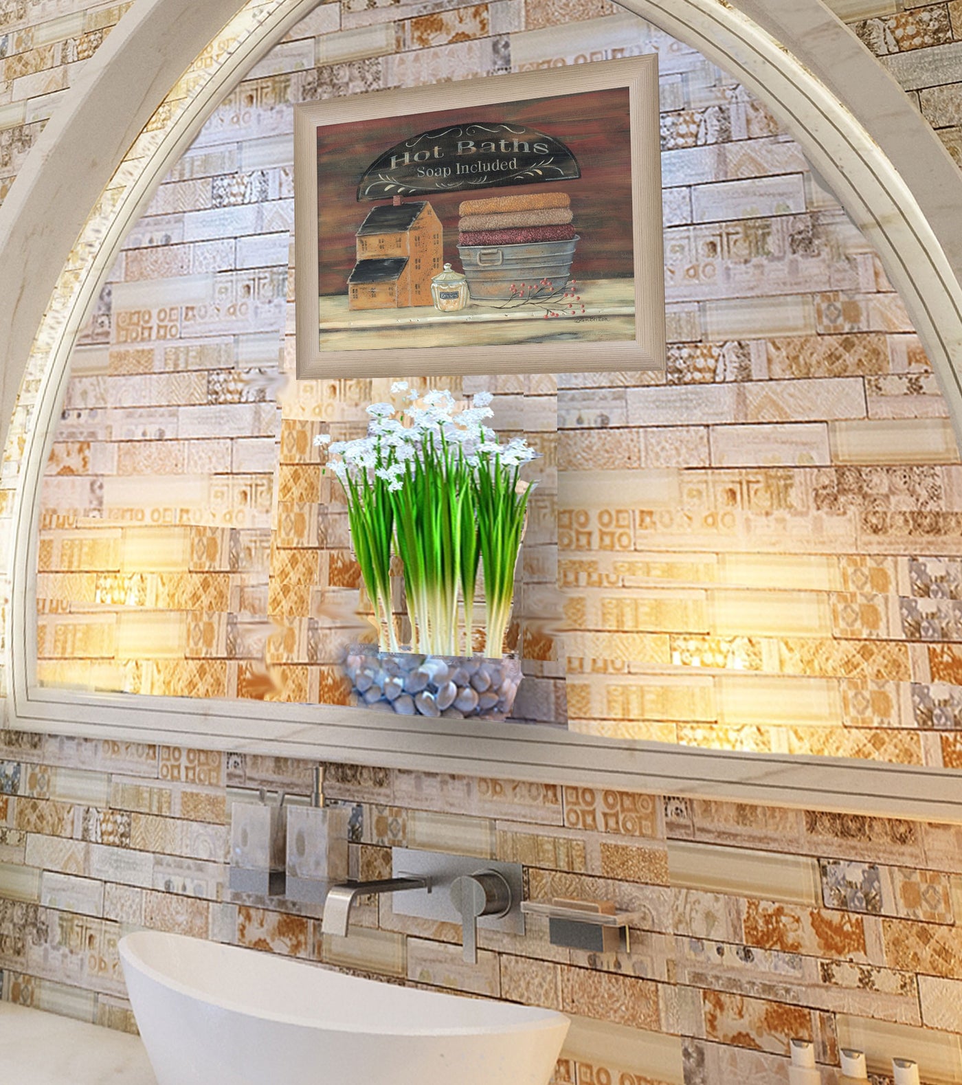 The Hot Bath Brown Framed Print Bathroom Wall Art is the perfect decorative accessory for your home. This print is a visual artistic expression that allows you to decorate your space in style. Reproduced for you on paper, this hanging decorative accent will be a trendy and fashionable way to dress your walls. Hang on your wall to add some up to date fashion and decoration. Utilize this opportunity to a focal point in the room with this fabulous wall decor option. 'W x 1' D