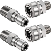 Hotop 2 Sets Npt 3/8 Inch Stainless Steel Male And Female Quick Connector Kit Pressure Washer Adapters (External Thread)