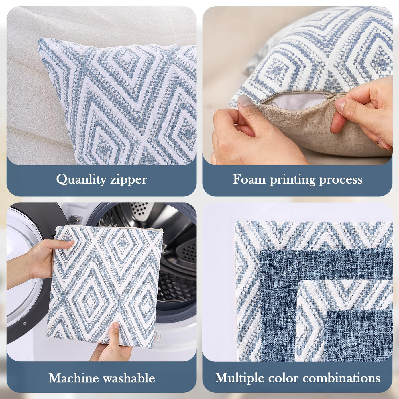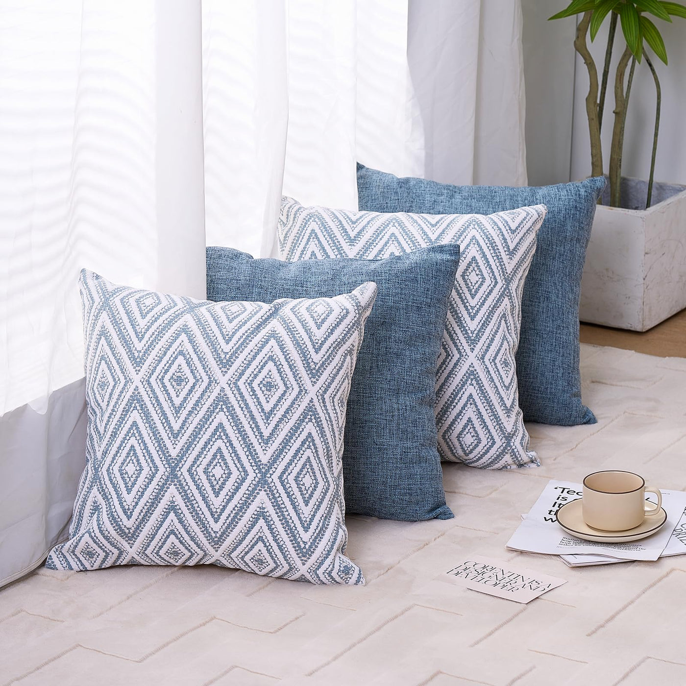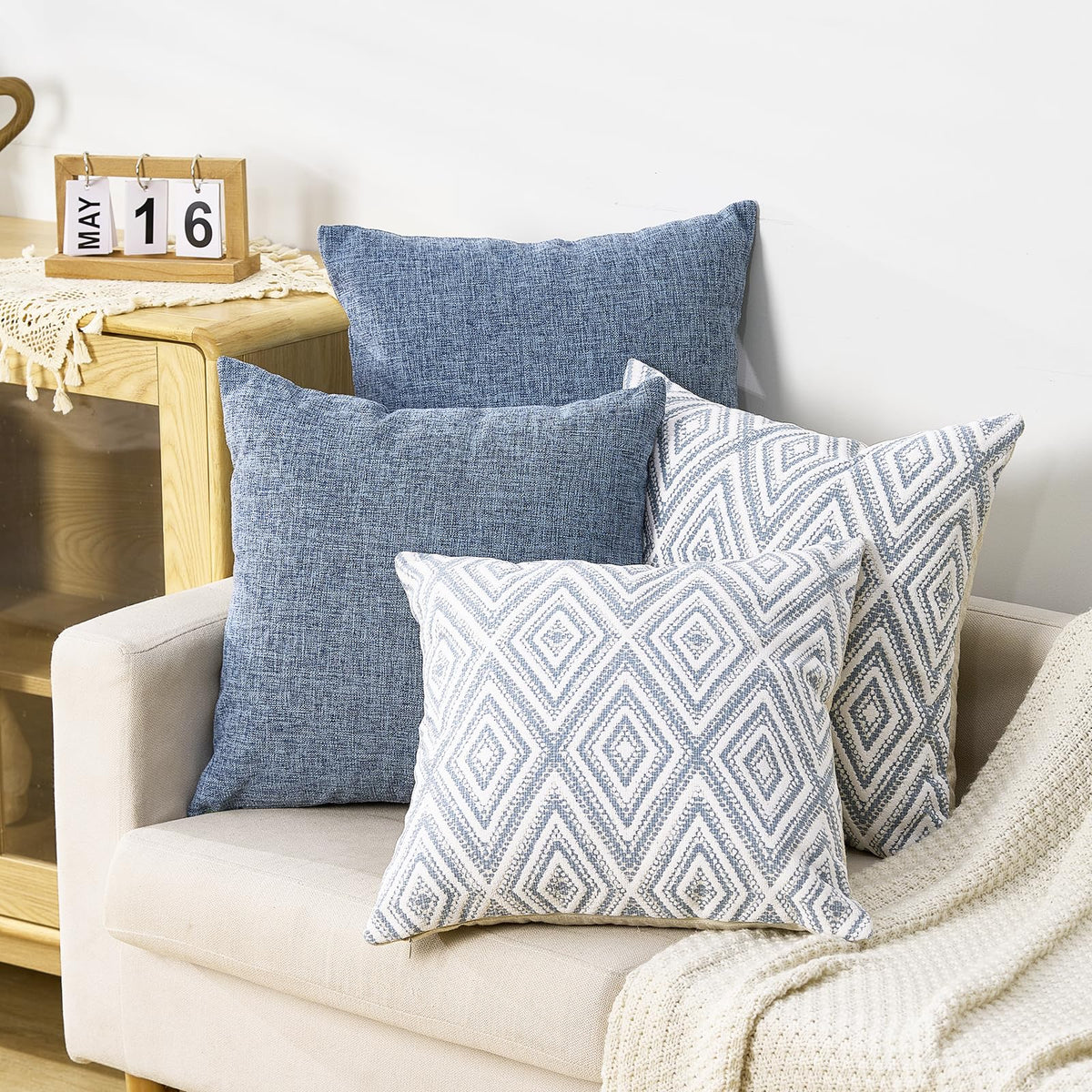 Hpuk Decorative Throw Pillow Covers Set Of 4 Square Couch Pillows Linen Cushion Cover For Couch Sofa Living Room, 18'X18' Inches, Blue