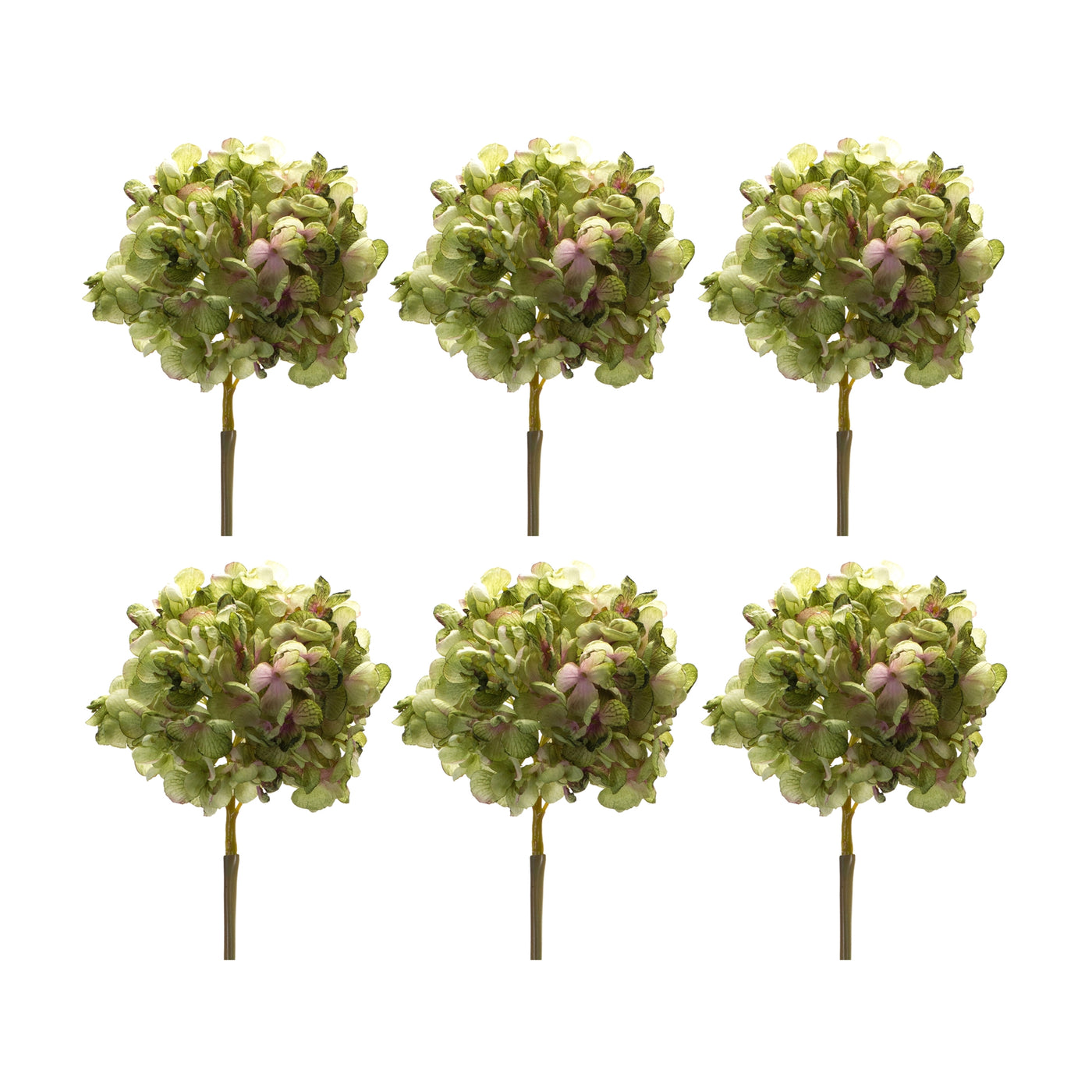 Hydrangea Stem 23''H Polyester Add a pop of natural color to your home with this beautiful Hydrangea Stem. Featuring 6 pieces, this set's Hydrangea flowers paired with the assorted foliage accents makes this piece the perfect additon to your home decor. The quality polyester flowers and leaves are sure to last for seasons to come. Display the piece in a vase or decorative container to complete the look. Measures 8 x 8 x 22.75 each Primary Materials: Polyester Reccommended for indoor and outdoor covered use only
