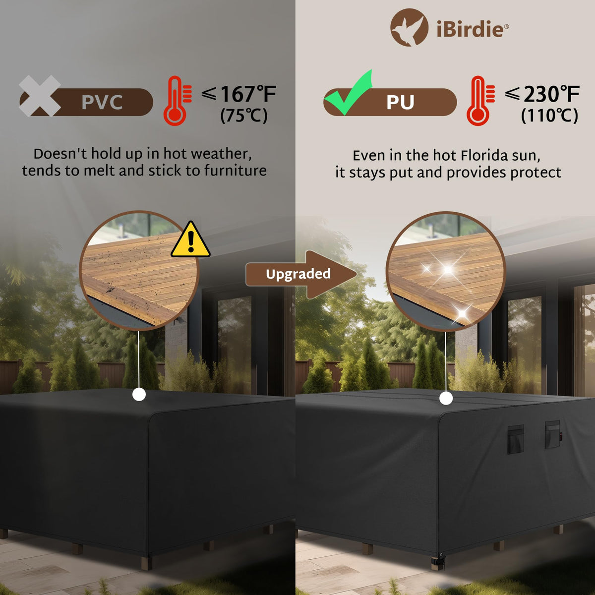 Ibirdie Outdoor Patio Furniture Set Covers 64 X 64 Inch Fit 5 X 5 Ft, 60 X 60 Inch Table, Waterproof Weatherproof Square Cover, Heavy Duty 600D For Outside Dining Table And Chairs