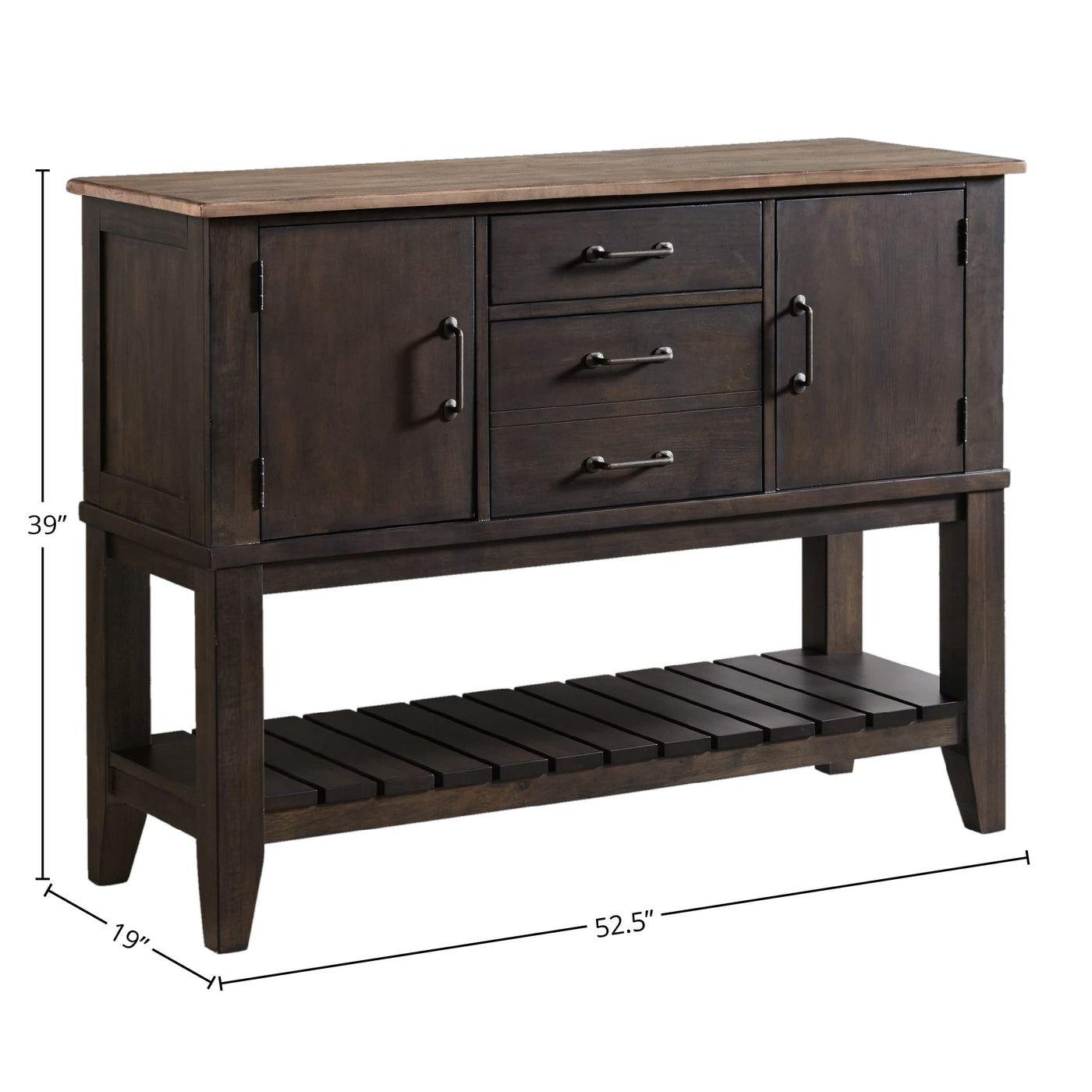 The Beacon 53" Wide Server offers the perfect solution for organizing your dining essentials. With 3 full extension drawers and 2 cupboards, you'll have ample storage space. The stylish metal handle pulls and open bottom shelf make this server both functional and aesthetically pleasing.FeaturesFeatures 3 spacious medium sized full extension drawers with English dovetail construction Equipped with stylish metal handle pulls that are made to last Features 2 cupboards with adjustable shelving for your convenience Open bottom shelf storage for baskets or wine bottles Features unique rough sawn top and rubbed black base Complement your space with additional pieces from our Beacon collection (sold separately) Two-toned black and walnut finish suitable for all decor stylesDimensionsAssembled Product: 52.5 inches wide x 19 inches deep x 39 inches high Drawer Width: 12 inches Drawer Depth: 16 inches Drawer Height: 9 inches Shelf Width: 12 inches Shelf Depth: 16 inches Shelf Height: 8 inches Shelf Weight Capacity: 20 pounds Weight Capacity: 200 poundsIntercon was established in 1976 and has become an industry leader in designing, marketing and manufacturing wood dining, bedroom and home entertainment furniture. It has been a family owned and operated business for over forty years. Our design and warehouse capabilities allow us to be a leading provider of furniture throughout the United States and Canada. It is our mission to offer our customers superior quality products with lasting value.