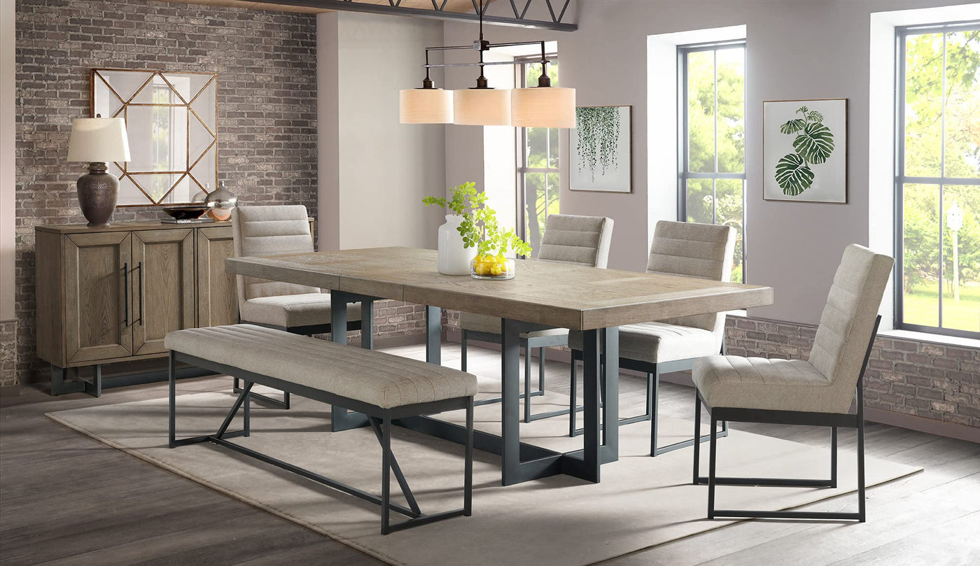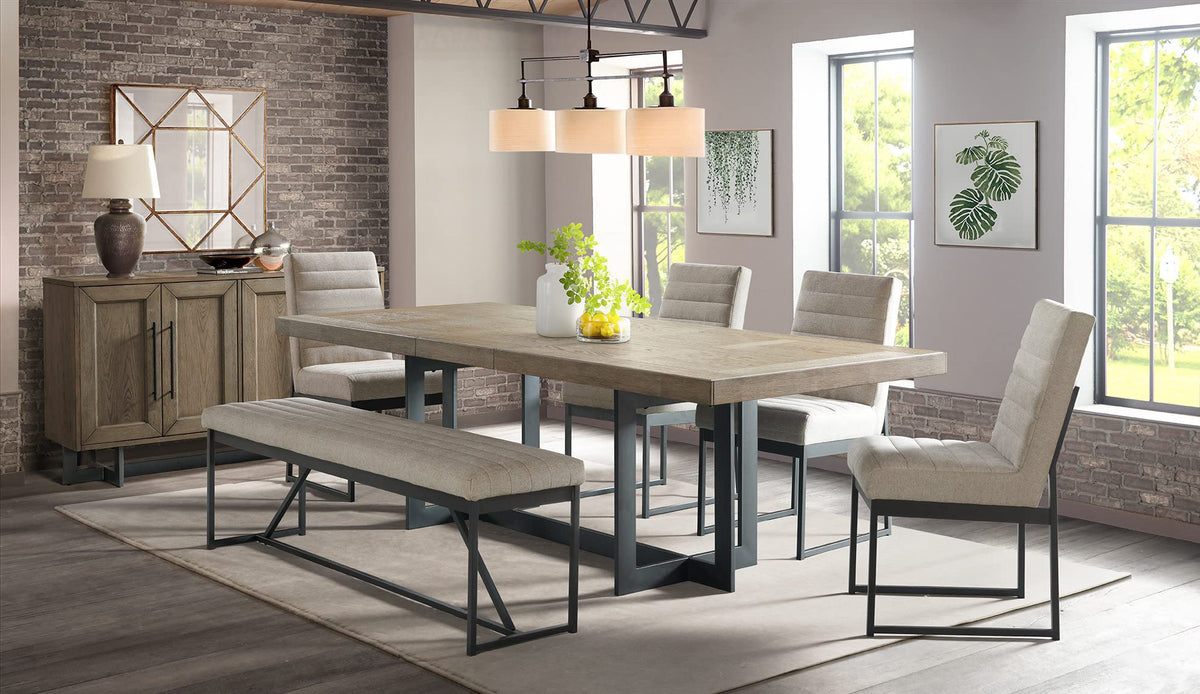 Complement your modern industrial dining table with the Eden 64" Wide Backless Bench. The bench features a comfortable cushion and is ergonomically designed for ultimate comfort. The bench is constructed with oak veneer and select hardwood, including rubberwood, poplar, and maple, and features a beautiful wire-brushed urban rustic Dune finish. The metal base and frames ensure durability and longevity.FeaturesErgonomically designed upholstered chairs and benches offer maximum comfort Comfortably cushioned seats Metal base and frames on chairs and bench ensure added stability Extra wide 64" bench suitable for entryways, dining rooms, or living rooms Rustic Dune finish is suitable for all decor styles Complement your space with additional pieces from our Eden collection (sold separately)DimensionsAssembled Product: 64 inches wide x 16 inches deep x 19.8 inches high Weight Capacity: 300 poundsIntercon was established in 1976 and has become an industry leader in designing, marketing and manufacturing wood dining, bedroom and home entertainment furniture. It has been a family owned and operated business for over forty years. Our design and warehouse capabilities allow us to be a leading provider of furniture throughout the United States and Canada. It is our mission to offer our customers superior quality products with lasting value.