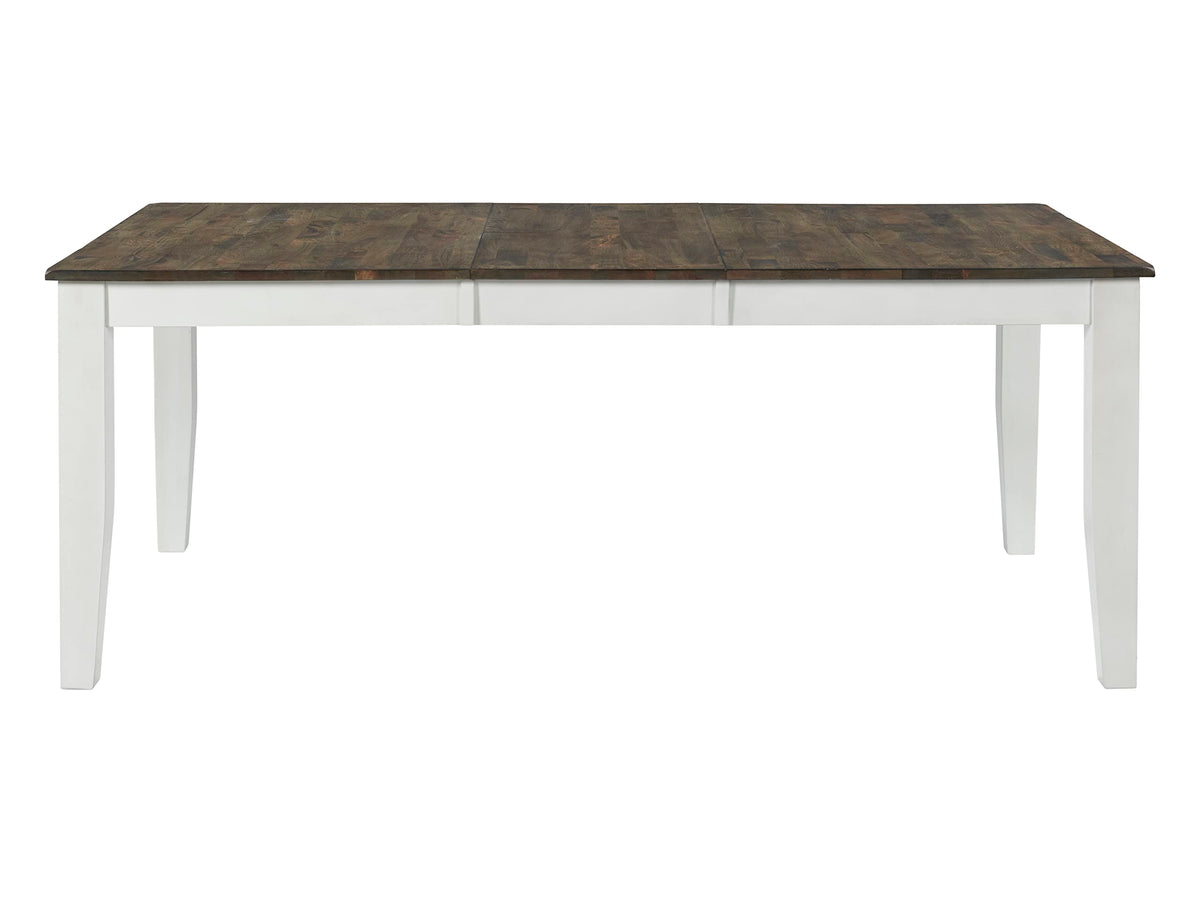 The Kona 42 x 60-78 Dining Table is a stylish and durable addition to any dining room. This table is built to last from solid mango wood and select hardwoods. The two-toned gray and white finish adds a classic touch to the design and can easily blend with any decor. The sturdy legs are anchored into the frame for extra support, ensuring a stable and secure surface for entertaining family and friends. The smooth top surface makes it perfect for hosting meals and gatherings.