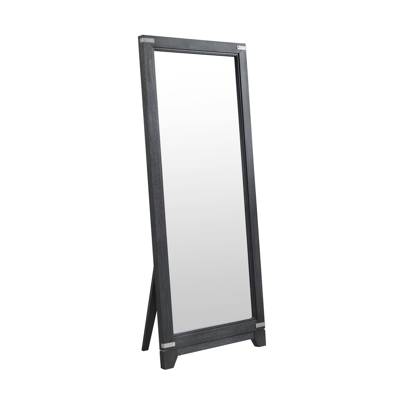 The Laguna Bedroom Floor Mirror is the perfect addition to any modern bedroom setting. The frame of this mirror has a beautiful weathered steel finish, and features metal bracket accents for an industrial edge. The body of the mirror is made from oak veneer with select hardwoods and wire brushing for a unique glazed finish. This mirror features beveled glass which provides an incredible depth perception while maintaining its sleek and chic look. Providing both aesthetic appeal and function, this piece is the perfect statement piece for any bedroom space.