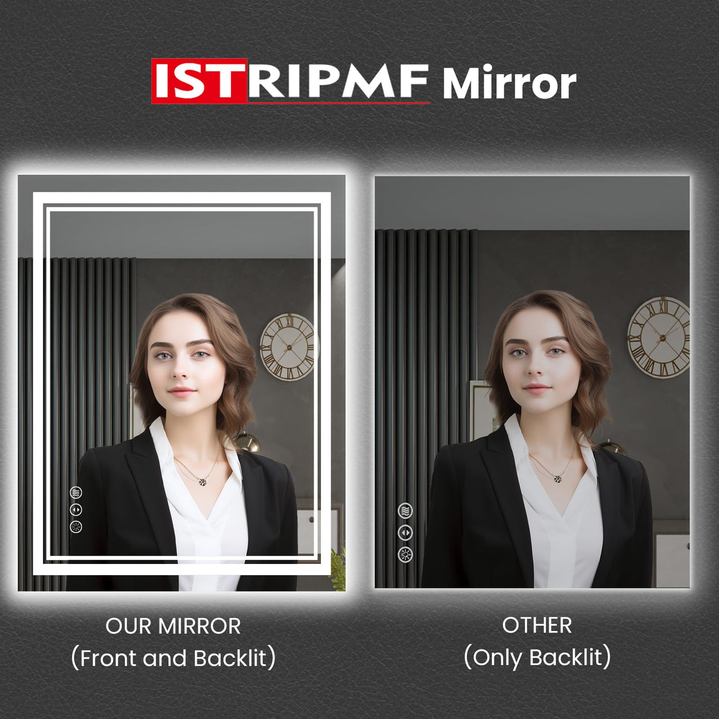 Istripmf 24X30 Inch Led Bathroom Mirror With Lights, Backlit And Front Lighted Bathroom Mirrors For Wall, Anti-Fog Dimmable Memo