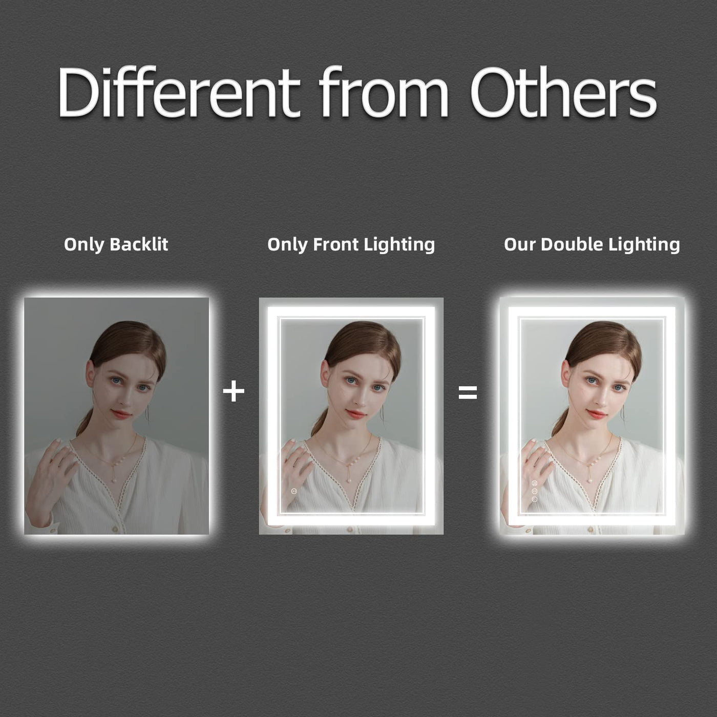 Q: What are the lighting options available for the ISTRIPMF LED Bathroom Mirror?A: The ISTRIPMF LED Bathroom Mirror features both front and back lighting, providing a brighter and more optimal lighting experience for your grooming needs. Additionally, it offers three color temperature settings and dimmable brightness to suit your preferences.