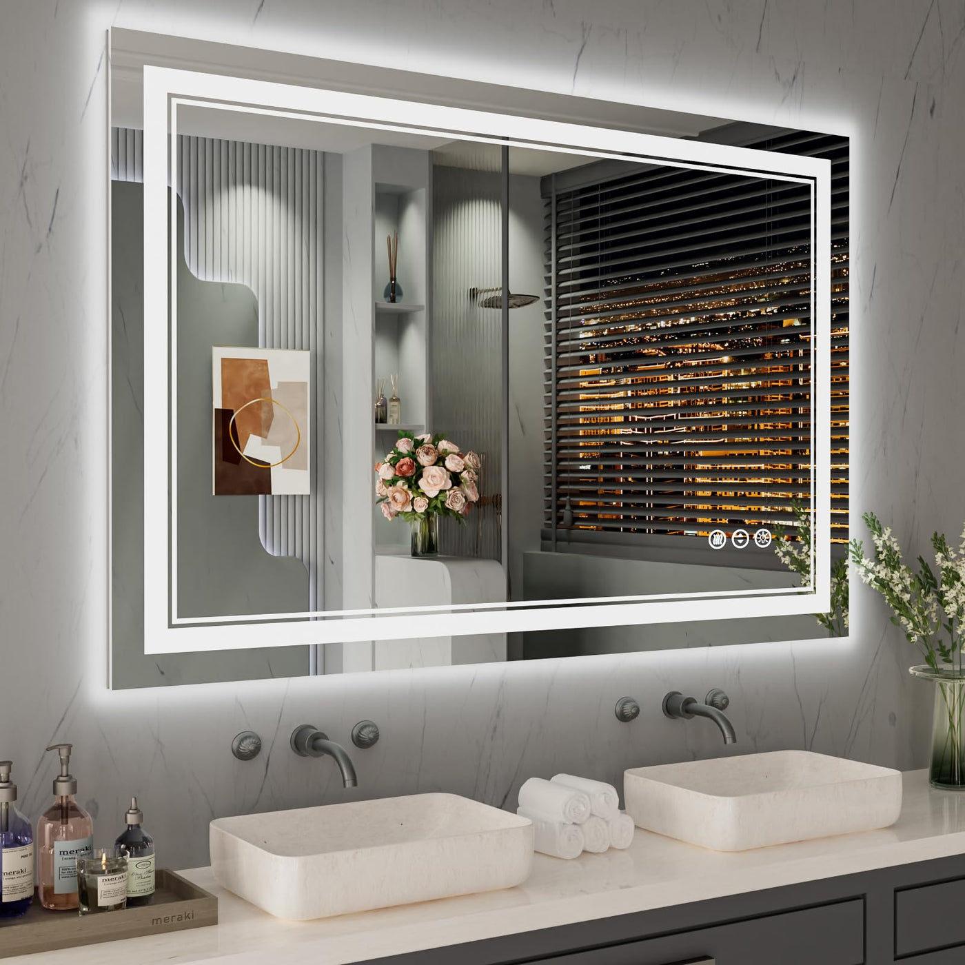 Q: What makes the ISTRIPMF LED mirror a good choice for modern bathrooms?A: The ISTRIPMF LED mirror combines stylish design with advanced features such as dimmable lighting, anti-fog technology, and a durable tempered glass construction, making it a perfect addition to any contemporary bathroom.