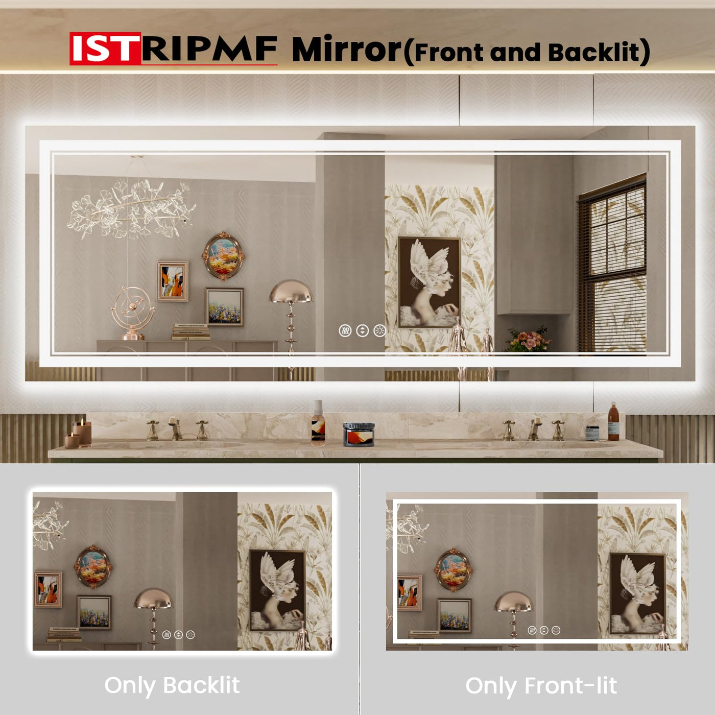 Istripmf 84X32 Inch Large Led Mirror Bathroom With Lights, Backlit And Front Lighted Bathroom Vanity Mirror For Wall, Anti Fog,D