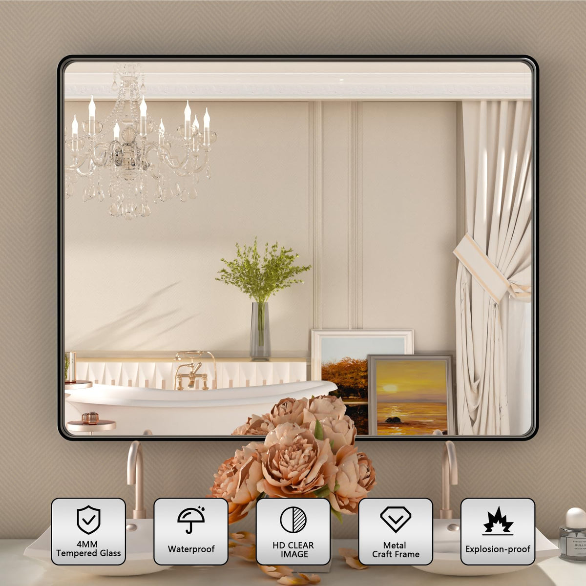 Istripmf Black Metal Framed Bathroom Mirror For Wall,32X36 Rounded Rectangle Mirror, Matte Black Bathroom Vanity Mirror Farmhous