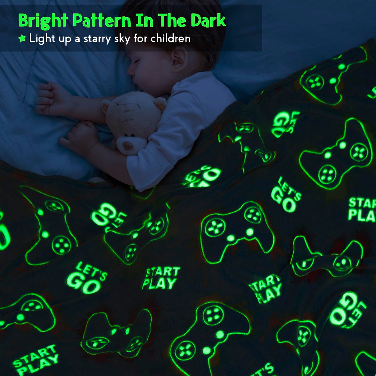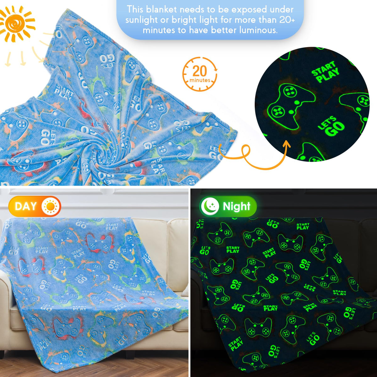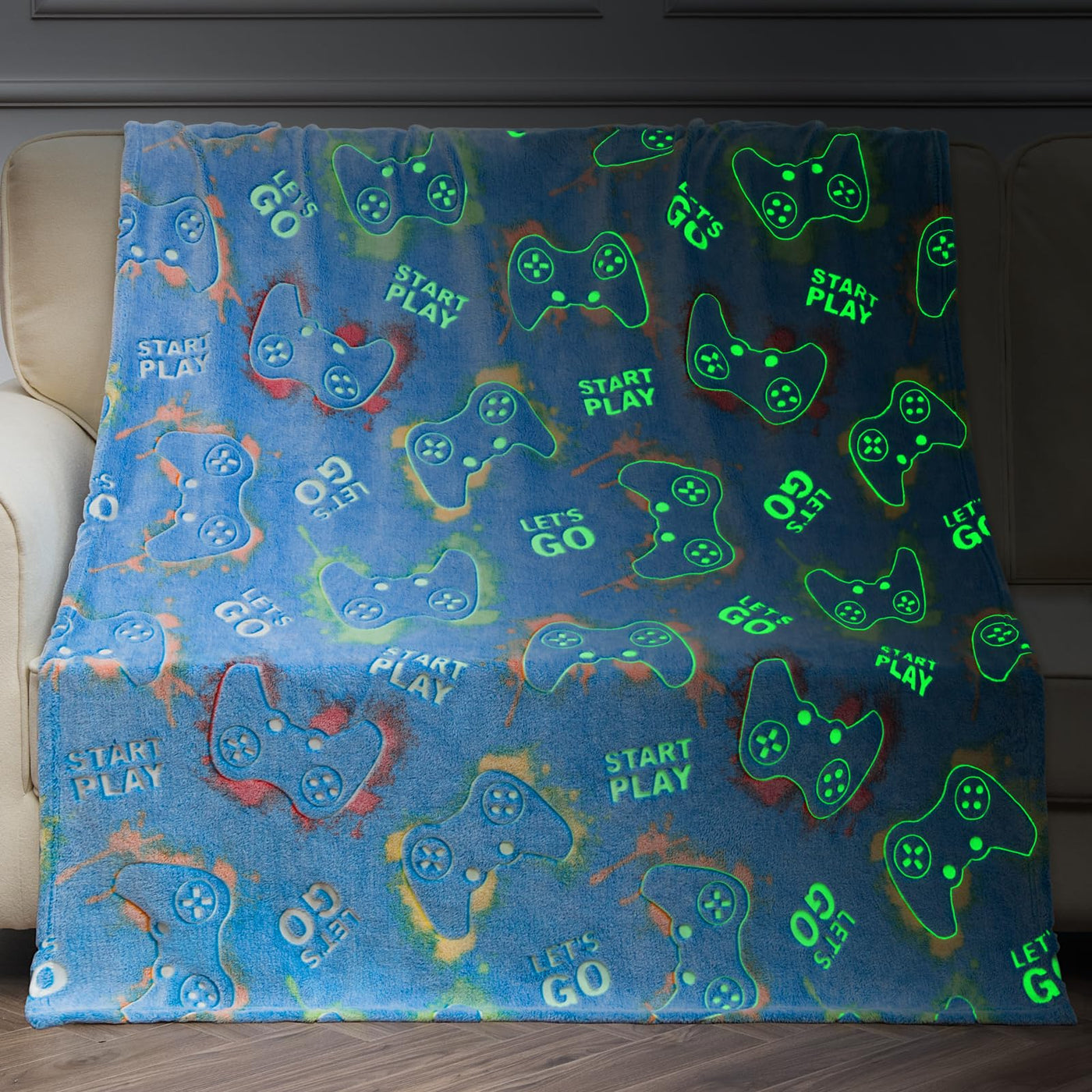 Glow In The Dark Gaming Gamer Throw Blanket, Video Game Controller Gamepad Presents Gifts Toys for Kids Boys Teen Girls Men Women Adults for Birthday, Christmas, Easter, Thanksgiving, Valentine's Day, Children's Day, Halloween Presents. Dinosaur room decor for kids boys bed and bedroom. Gift for 6 year old boy, dinosaur toys for kids boys, toys for 4 year old boys, 12 year old boy gift ideas, 12 year old boy gifts, 4 year old boy birthday gifts, 7 year old boy gifts, gifts for 3 year old boy, gifts for 8 year old boys, gifts for 5 year old boys, boy gifts age 8-10, boys blankets and throws, toys for 4 year old boys, Video Game Controller Gamepad birthday decoration. Excavator Presents for Kids Boys Toddler Teen Son and Daughter,Teenagers. Jekeno luminous blanket is full of childlike interest, which makes children love it when they first touch it. Great quality fabrics, Upgraded luminous. Fluorescent blanket stimulates the imagination of kids. Please leave the blanket under the light for half an hour for better results. Get it now to surprise your loved ones, the fluffy luminous blanket is an ideal choice for kids boys, son, daughter, grandson, granddaughter. The blanket is ideal for using on the sofa, couch and bed. The light of the blanket will make your kids fall asleep easily and happily. Suitable for home outdoor camping, school or traveling. The light on the blanket doesn't affect the children's sleep, it makes them feel safe when sleeping. Our blankets are anti-static, which allows you to enjoy cozy whether you are at home, or traveling. The blanket is super soft cozy, warm, lightweight, breathable, friendly for the delicate skin. Dinosaur gifts for autumn and winter, provide a smooth and fun bedtime. Instructions: Machine wash in cold and tumble dry on low. Do not use bleach.