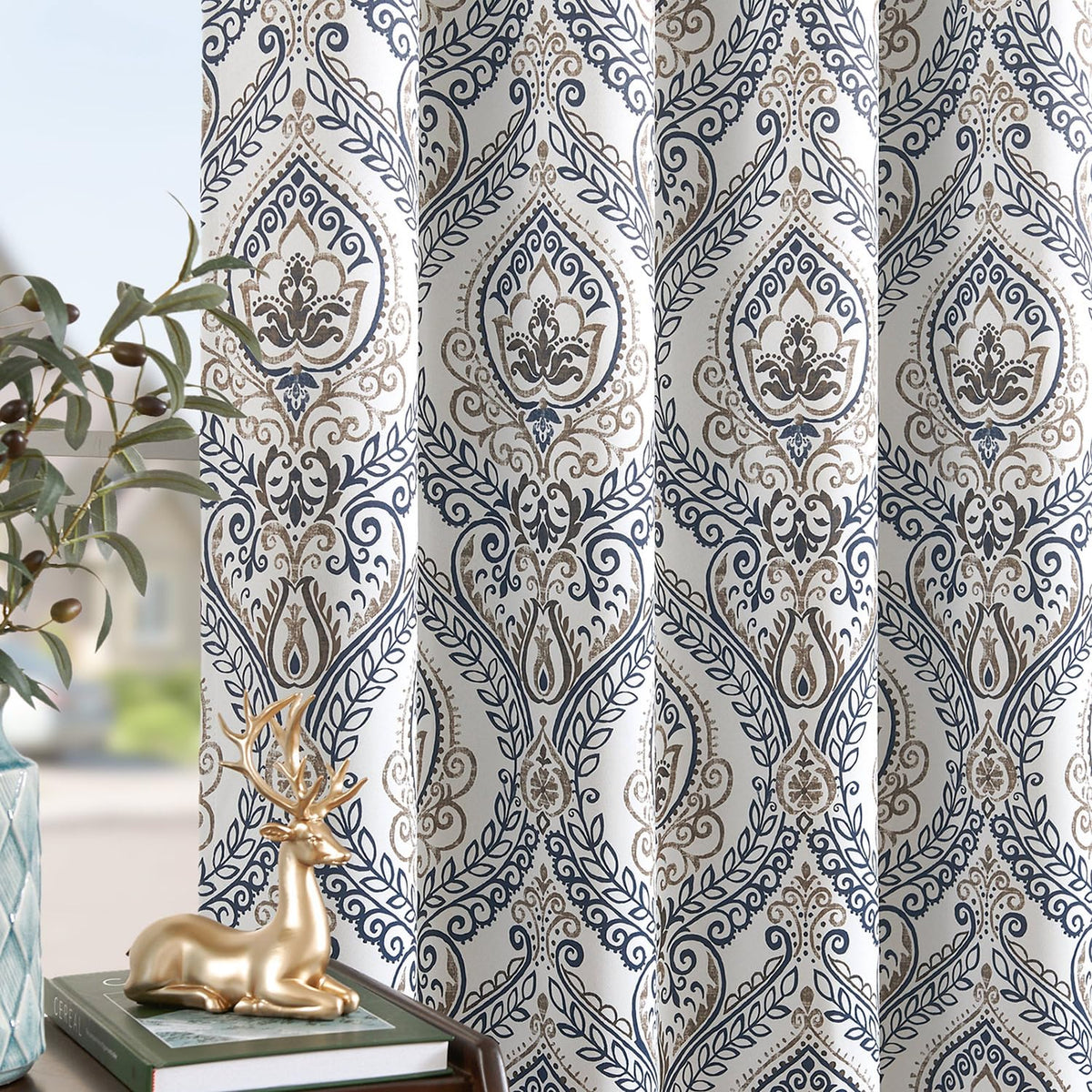 Dress up your home into a romantic cottage look with JINCHAN medallion blackout curtains. Premium Fabric: Our thermal window curtains are made of durable fabric. The package contains two panels measuring 52 inches wide by 84 inches long (104 inches wide for a pair). You will find there is a special blackout lining on the back side with just the right amount of sheerness that seamlessly blends with your existing decor in a contemporary style. Full Blackout: Vintage medallion motif on smooth fabric, these farmhouse curtains do a great job of blocking out light and noise when you’re ready to settle down for a little peace and quiet. They can also keep heat in during the winter and heat out during the summer which helps you save energy bills. Exquisite Workmanship: These room darkening curtains are designed with 8 antique bronze grommets top making it easy to slide and fit any standard or decorative curtain rods up to 1.6' in diameter. The look makes them a refreshing, natural, and stylish addition to your room, perfect for bringing unique aesthetics to it. Versatile Fit: You can hang these elegant thermal insulated panels alone or layer them with other curtains. A perfect finishing touch for a living room, bedroom, laundry room, dining room, kids room, guest room,nursery, kitchen, french door, sliding glass door, hotel or office. Easy Care: These window treatments are made to last because of the fine material and good craftsmanship, and they are easy to clean and maintain. Machine wash in cold water on a gentle cycle and tumble dry on a low setting. Please do not bleach. The creases that occur during packing and shipping can be pressed by light ironing or steaming the front side.