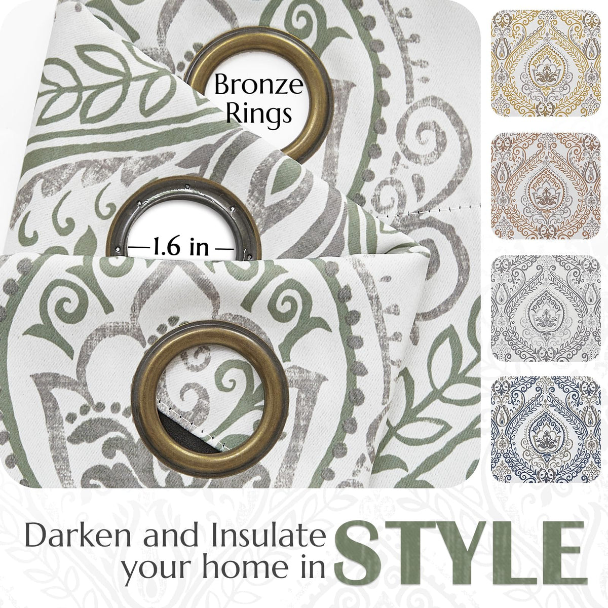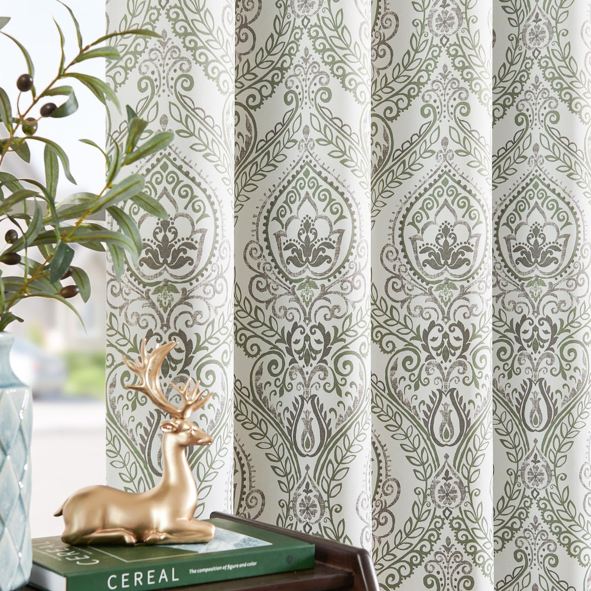 Jinchan 100% Blackout Curtains 84 Inches Long Sage Green Damask Medallion Window Curtains For Bedroom Grommet Thermal Insulated Drapes For Living Room Vintage Luxury Window Treatments Set 2 Panels