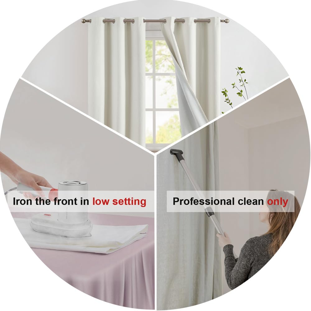 Dress Up Your Home Into A Modern Farmhouse Look With Jinchan Textured Blackout Curtains. Premium Fabric: Our Linen Look Window Curtains Are Made Of Durable Fabric. The Package Contains Two Panels Measuring 38 Inches Wide By 84 Inches Long (76 Inches Wide For A Pair). You Will Find There Is A Special Blackout Coating On The Back Side With Just The Right Amount Of Sheerness Seamlessly Blends With Your Existing Decor In A Contemporary Style. Full Blackout: Natural Linen Looking With Muted Colors, These Solid Curtain Panels Do A Great Job Of Blocking Out Light And Noise When Youre Ready To Settle Down For A Little Peace And Quiet. They Can Also Keep Heat In During The Winter And Heat Out During The Summer Which Helps You Save Energy Bill. Exquisite Workmanship: These Room Darkening Curtains Are Designed With 6 Matte Silver Grommets Top Making It Easy To Slide And Fit Any Standard Or Decorative Curtain Rods Up To 1.6'' In Diameter. The Linen Look Makes Them A Refreshing, Natural, And Stylish Addition To Your Room, Perfect For Bringing Unique Aesthetics To It. Versatile Fit: You Can Hang These Elegant Thermal Insulated Panels Alone Or Layer Them With Other Curtains. A Perfect Finishing Touch For A Living Room, Bedroom, Laundry Room, Dining Room, Kids Room, Guest Room,Nursery, Kitchen, French Door, Sliding Glass Door, Hotel Or Office. Easy Care: These Window Treatments Are Made To Last Because Of The Fine Material And Good Craftsmanship, And They Are Easy To Clean And Maintain. Machine Wash In Cold Water On A Gentle Cycle And Tumble Dry On A Low Setting. Please Do Not Bleach. The Creases That Occur During Packing And Shipping Can Be Pressed By Light Ironing Or Steaming The Front Side.
