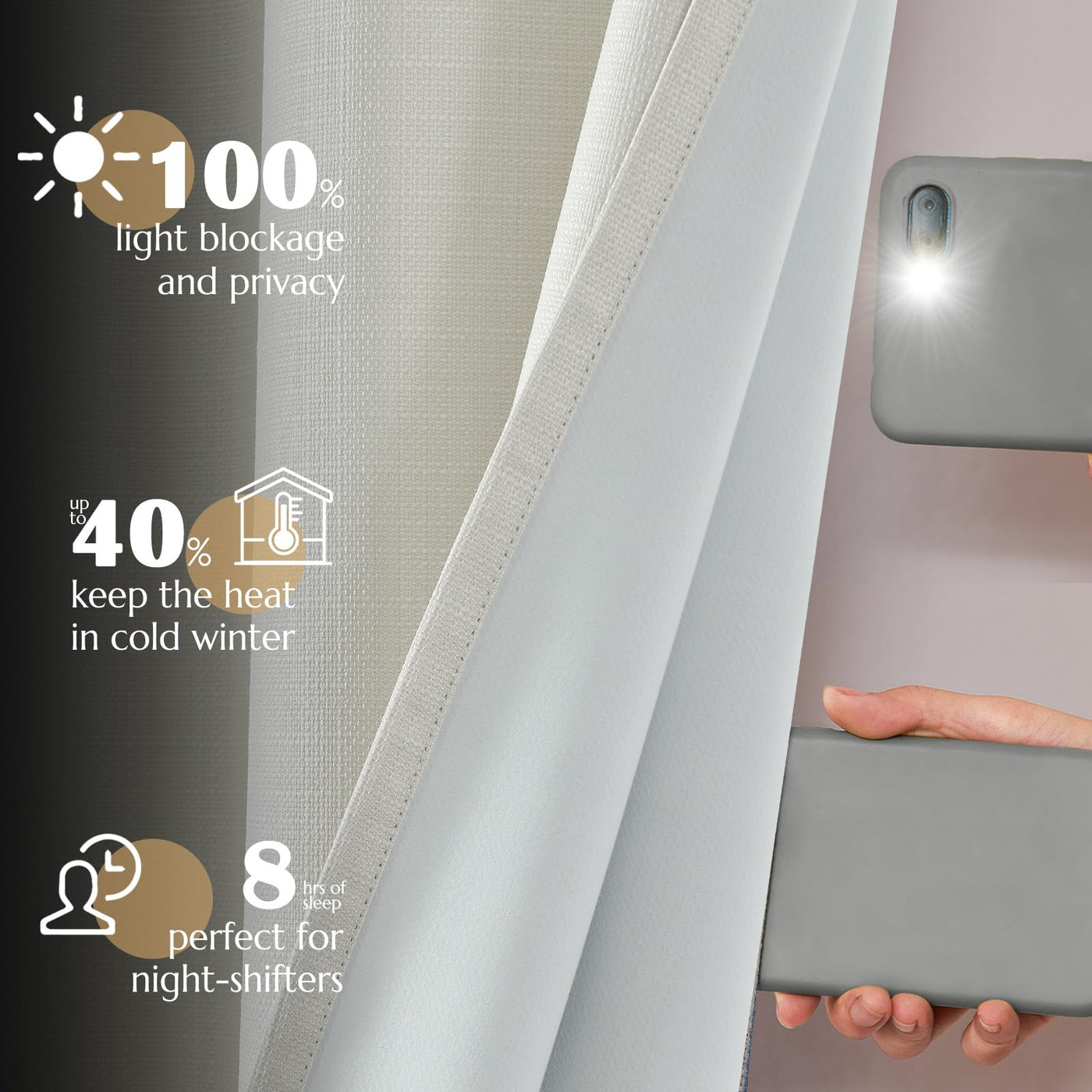 Jinchan 100% Blackout Curtains For Bedroom Living Room Linen Blackout Curtains 84 Inch Long Room Darkening Curtains Linen Textur