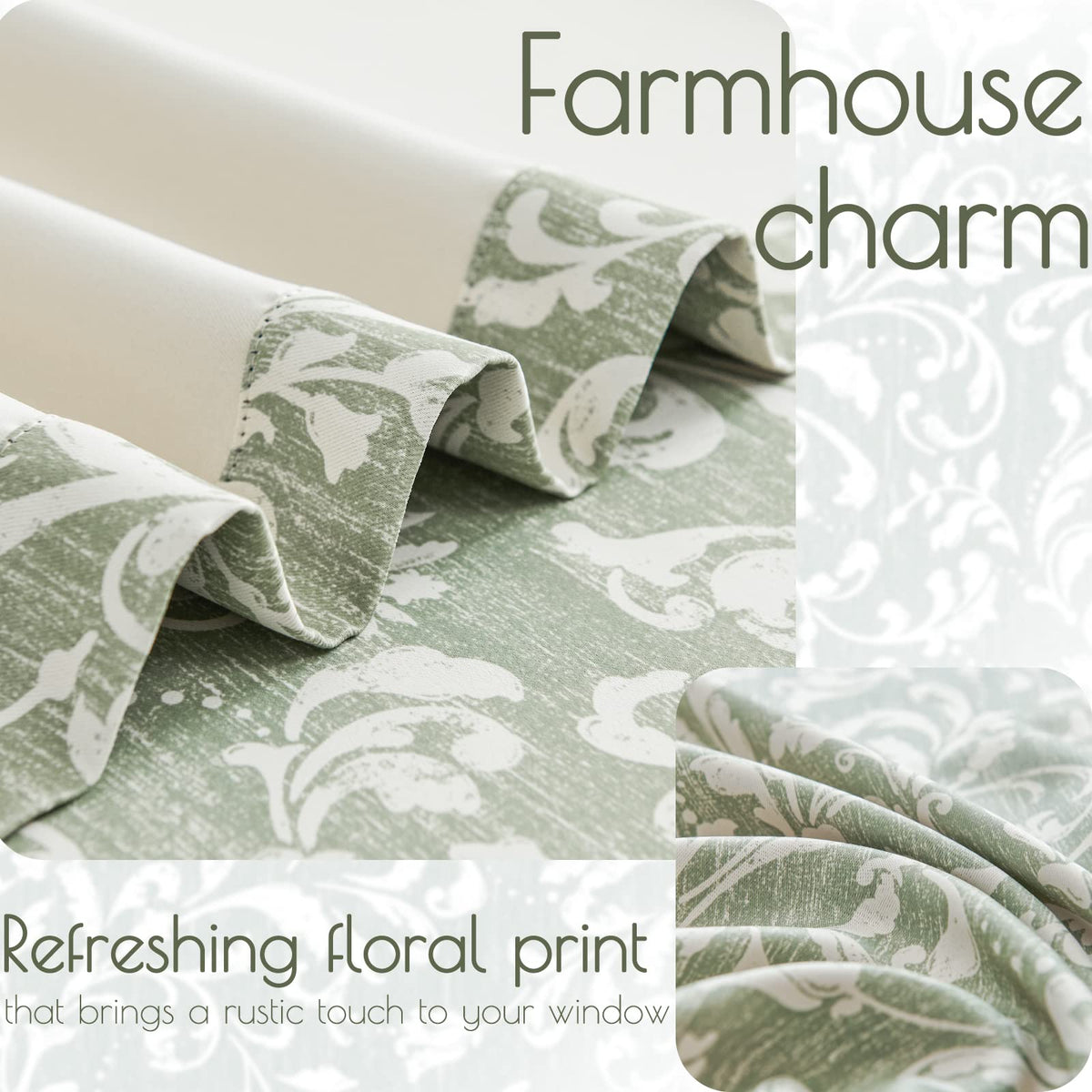 Q: What style of home decor do these curtains complement?A: The floral sage green pattern of these curtains adds a touch of elegance and can blend seamlessly with modern, rustic, and country-style home decor.