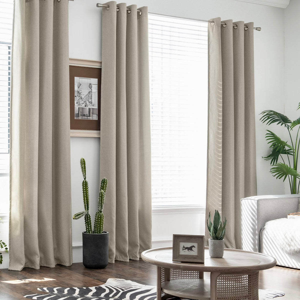 Jinchan Beige Curtain 108 Inch Length Blackout Greyish Beige Curtain For Living Room Curtain 1 Panel Extra Long Texture Curtain Grommet Top Window Drape 38 Inches Wide By 108 Inches Long