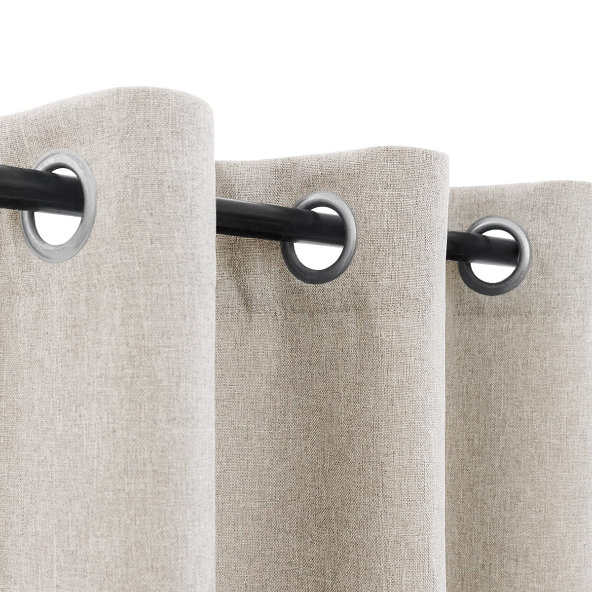 Here's why you'll love these simple design room darkening curtains: Simple Style: Linen Textured Room Darkening Curtain with matte silver finished grommets.The decoration of gold bead on the rim of curtains add more elegant stylish touch. Light Reducing and Privacy: Room darkening curtains encourage the best possible sleep and most comfortable setting for time of privacy and relax by automatically darkening and lowering noise levels. Energy Efficient: These thermal insulated curtains will make a budget noticeable difference, lower your heating & cooling cost by preventing sunlight & draft from getting in. Topmost Craftsmanship: Beautifully-straight seams, great finishing, and unrivaled durability; the same quality you'd find at high-end department stores, only at a fraction of the price! ABOUT US Withour products, you're in for trendy design, top notch quality, and great value. These curtain panels are manufactured by our ISO 9001 certified company, which has over 122 years of experience in crafts and presence in national stores. Experience total luxury at the most budget-friendly price with our drapery.