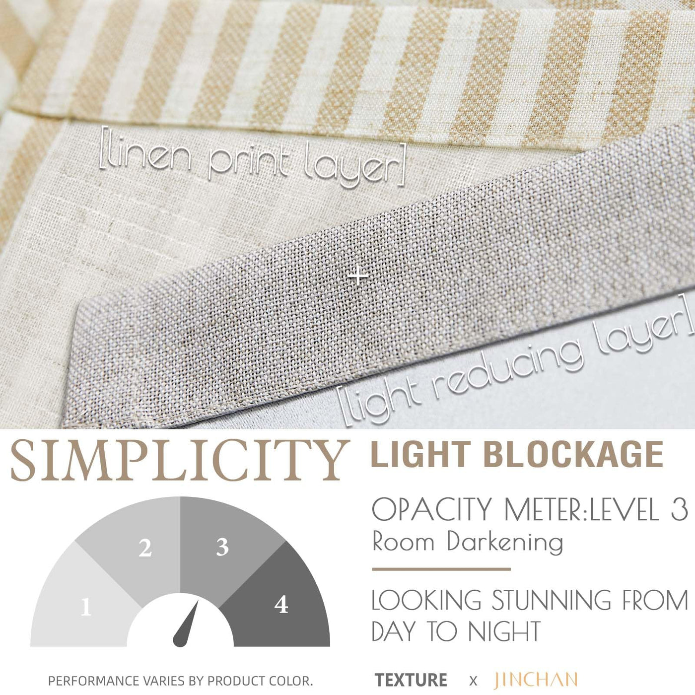 Here's why you'll love JINCHAN Striped Valance Curtains Blackout Kitchen Valance for Windows Pinstripe Linen Valance for Living Room 16 Inch Double Layer Farmhouse Valance Window Treatments Rod Pocket 1 Panel as a finishing touch to your home decor!Well-Made Valance for Windows: These valance curtains are sold in 1 panel measuring 50 inch width by 16 inch length. Our window valances has a 2.5 inch pole pocket and coordinate with most standard or extension curtain rods. Six classic tone to tone colors for you to choose from.Timeless Classic Valance Curtains: Pinstripe patterns create a sense of simplicity and elegance, adding retro and peaceful ambiance to your room, easily matching your existing interior decor.Room darkening Farmhouse Valances: Flax linen double layer valance curtains diffuse excessive light while offering privacy, making them the perfect room window valances. Enjoy the cozy time by enjoying the proper light inside. Thermal Insulated fabric is suitable for use throughout the home. Versatile Valances Window Treatments: Dress up your kitchen window with our mindfully made valances window treatments. Not only are these linen valances suitable for the kitchen area, but also a perfect addition to your living room, bedroom, bathroom and basement. They are suitable for rustic, vintage and farmhouse styles.Easy Care Country valances: Our country valances are durable thanks to sturdy linen-poly blend fabric. Machine washable in cold water in gentle circle and tumble dry in low setting. Do not bleach. Creases on the window topper from packing and shipping can be pressed by ironing or steaming.ABOUT JINCHAN: Visit our store and discover more window treatments in a variety of designs and fabrics. JINCHAN strives to offer quality home decor for spaces like living room, bedroom, kitchen, including but not limited to window curtains, shower curtains, french door curtains, area rugs, and throw blankets.