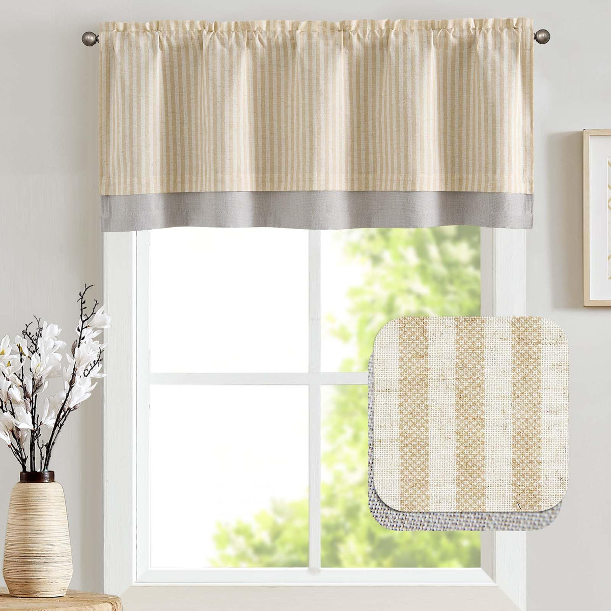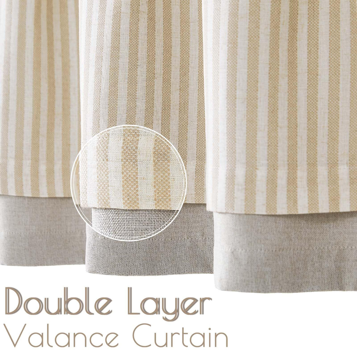 Jinchan Blackout Striped Valance Curtain Farmhouse Pinstripe Kitchen Window Valance For Living Room Bedroom 18 Inch Overlay Double Layer Window Valance Room Darkening 1 Panel Natural Beige