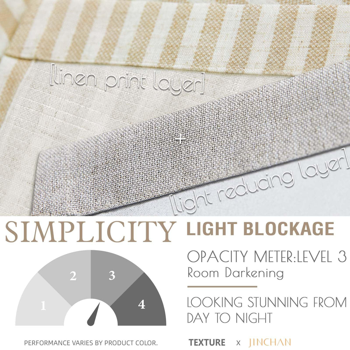 Here's why you'll love JINCHAN Striped Valance Curtains Blackout Kitchen Valance for Windows Pinstripe Linen Valance for Living Room 18 Inch Double Layer Farmhouse Valance Window Treatments Rod Pocket 1 Panel as a finishing touch to your home decor!Well-Made Valance for Windows: These valance curtains are sold in 1 panel measuring 50 inch width by 18 inch length. Our window valances has a 2.5 inch pole pocket and coordinate with most standard or extension curtain rods. Six classic tone to tone colors for you to choose from.Timeless Classic Valance Curtains: Pinstripe patterns create a sense of simplicity and elegance, adding retro and peaceful ambiance to your room, easily matching your existing interior decor.Room darkening Farmhouse Valances: Flax linen double layer valance curtains diffuse excessive light while offering privacy, making them the perfect room window valances. Enjoy the cozy time by enjoying the proper light inside. Thermal Insulated fabric is suitable for use throughout the home. Versatile Valances Window Treatments: Dress up your kitchen window with our mindfully made valances window treatments. Not only are these linen valances suitable for the kitchen area, but also a perfect addition to your living room, bedroom, bathroom and basement. They are suitable for rustic, vintage and farmhouse styles.Easy Care Country valances: Our country valances are durable thanks to sturdy linen-poly blend fabric. Machine washable in cold water in gentle circle and tumble dry in low setting. Do not bleach. Creases on the window topper from packing and shipping can be pressed by ironing or steaming.ABOUT JINCHAN: Visit our store and discover more window treatments in a variety of designs and fabrics. JINCHAN strives to offer quality home decor for spaces like living room, bedroom, kitchen, including but not limited to window curtains, shower curtains, french door curtains, area rugs, and throw blankets.