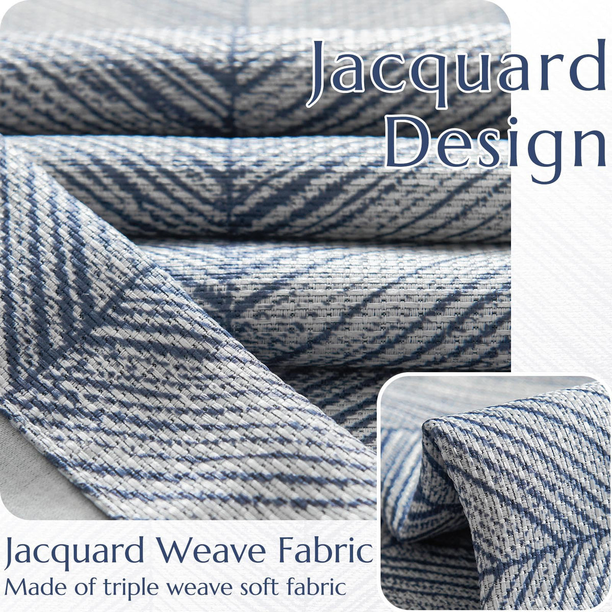 Jinchan Blue Printed Curtains 63 Inch Length For Living Room Grommet Jacquard Curtains With Herringbone Pattern Modern Room Dark