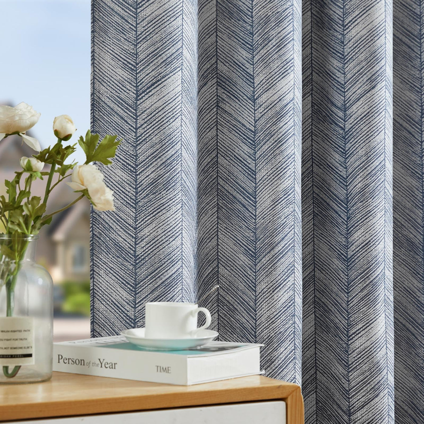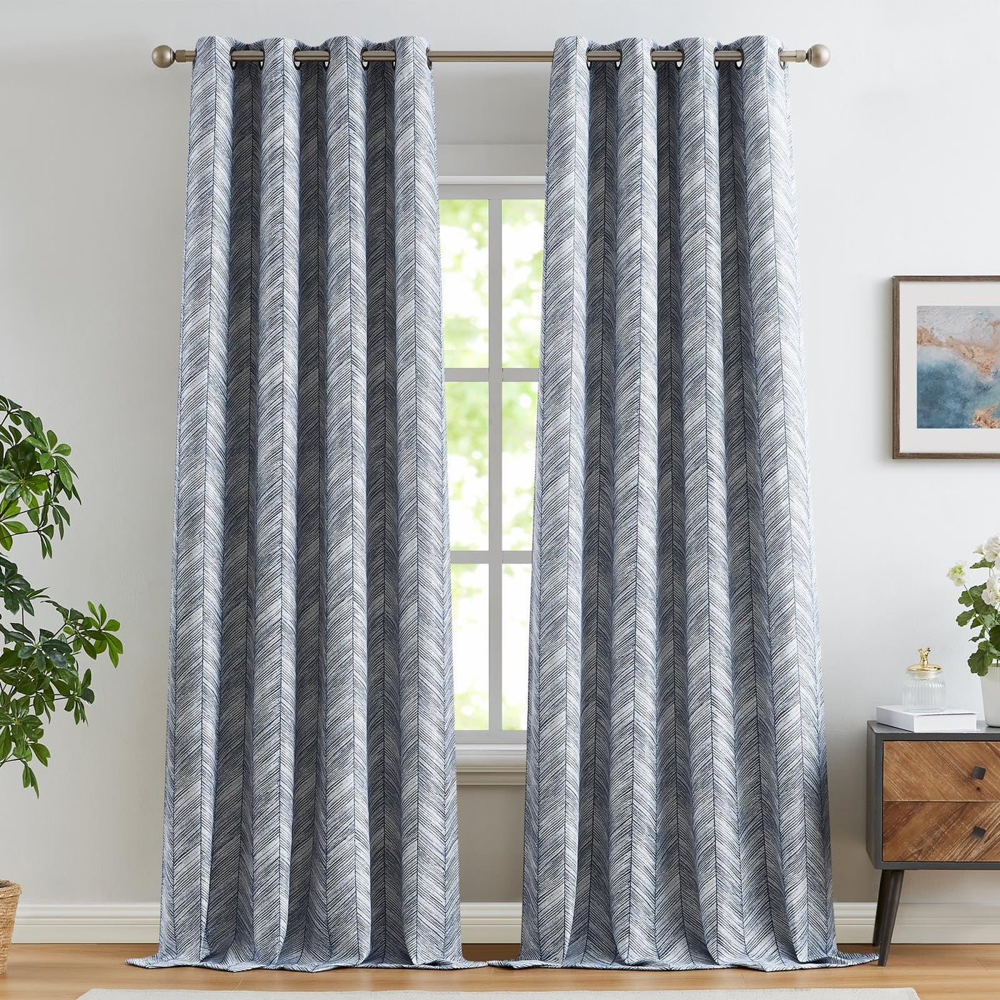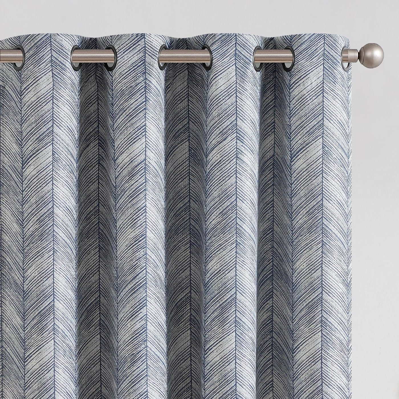 Jinchan Blue Printed Curtains 96 Inch Length For Living Room Grommet Jacquard Curtains With Herringbone Pattern Modern Room Dark