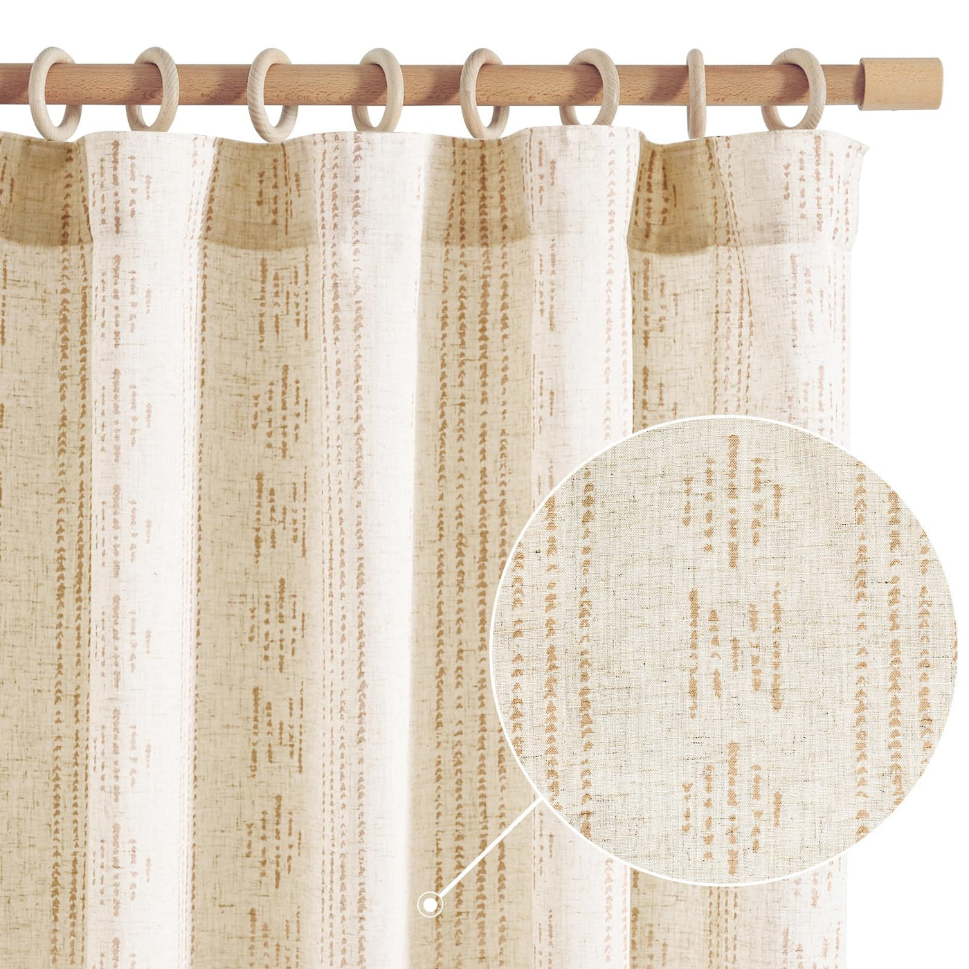 Jinchan Boho Curtains Linen Curtains For Living Room Farmhouse Taupe Curtains 108 Inches Long 2 Panels For Bedroom Geometric Str
