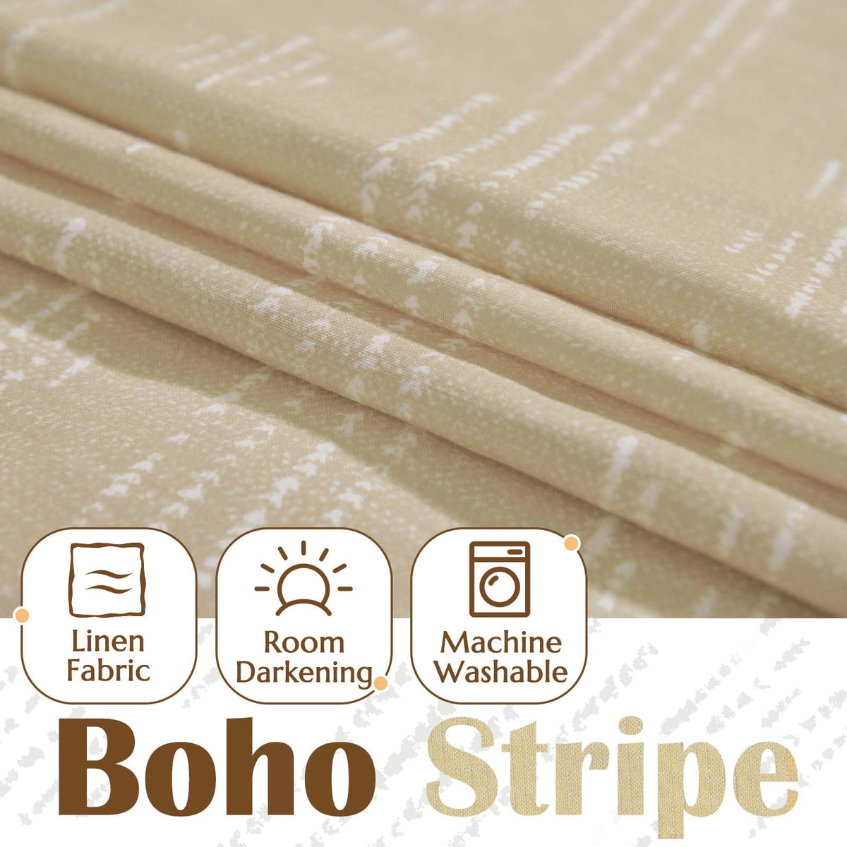 Here's why you'll love JINCHAN Boho Valance Curtains Blackout Kitchen Valance for Windows Geometric Striped Valance for Living Room 18 Inch Double Layer Farmhouse Window Valances Overlay Valance Rod Pocket 1 Panel as a finishing touch to your home decor!Well-Made Valance for Windows: These valance curtains are sold in 1 panel measuring 50 inch width by 18 inch length. Our window valances has a 3 inch pole pocket and coordinate with most standard or extension curtain rods. Several classic tone to tone colors for you to choose from.Timeless Classic Valance Curtains: Our linen curtains have stripes of different length on them, which bringing boho-chic style to your room, easily matching your existing interior decor.Room darkening Farmhouse Valances: Flax linen double layer valance curtains diffuse excessive light while offering privacy, making them the perfect room window valances. Enjoy the cozy time by enjoying the proper light inside. Thermal Insulated fabric is suitable for use throughout the home. Versatile Valances Window Treatments: Dress up your kitchen window with our mindfully made valances window treatments. Not only are these linen valances suitable for the kitchen area, but also a perfect addition to your living room, bedroom, bathroom and basement. They are suitable for rustic, vintage and farmhouse styles.Easy Care Country valances: Our country valances are durable thanks to sturdy linen-poly blend fabric. Machine washable in cold water in gentle circle and tumble dry in low setting. Do not bleach. Creases on the window topper from packing and shipping can be pressed by ironing or steaming.ABOUT JINCHAN: Visit our store and discover more window treatments in a variety of designs and fabrics. JINCHAN strives to offer quality home decor for spaces like living room, bedroom, kitchen, including but not limited to window curtains, shower curtains, french door curtains, area rugs, and throw blankets.