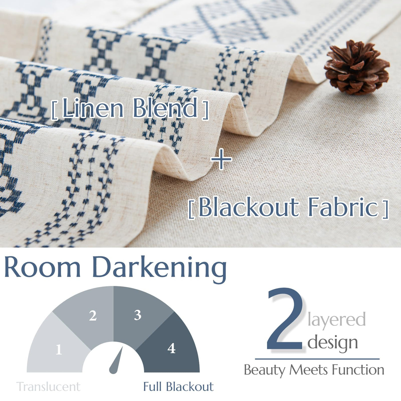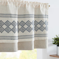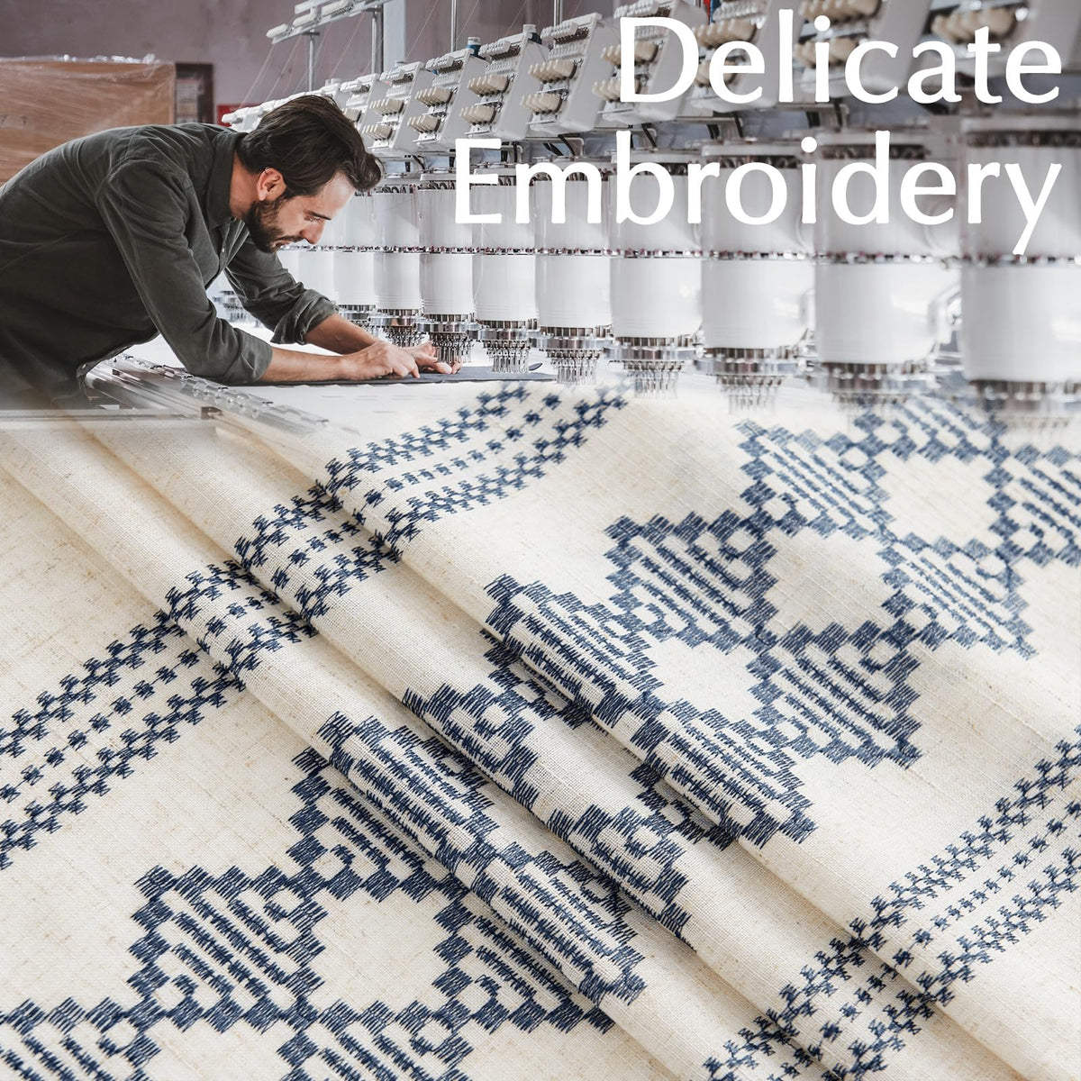 Jinchan Boho Valance Kitchen Valance Curtain For Windows 18 Inch Embroidered Linen Valance For Living Room Bedroom Bathroom Doouble Layer Blackout Farmhouse Curtain Rod Pocket 1 Panel Blue On Beige
