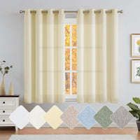 Here's why you'll love these simple design curtains: Simple Style: Linen Textured Curtain with 8 matte silver finished grommets. Same color on both sides makes the curtain panel look good from other side of the window as well. Light Reducing and Privacy: hese curtains allows for privacy while allowing some light to filter through. Enjoy your favorite show with no glare on your screen. Energy Efficient: Combined with the benefits of reducing outdoor light and providing privacy, make these the perfect window treatment for your home, office, apartment, business, and more. Topmost Craftsmanship: Beautifully-straight seams, great finishing, and unrivaled durability; the same quality you'd find at high-end department stores, only at a fraction of the price! ABOUT US Find CKNY HOME FASHION, various styles of the valances, the blackout curtains, the sheer curtains and the tier curtains for more choices.