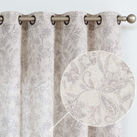 Jinchan Floral Curtains Linen Curtains For Living Room Verbena Grey French Country Farmhouse Curtains 63 Inches Long Light Filte