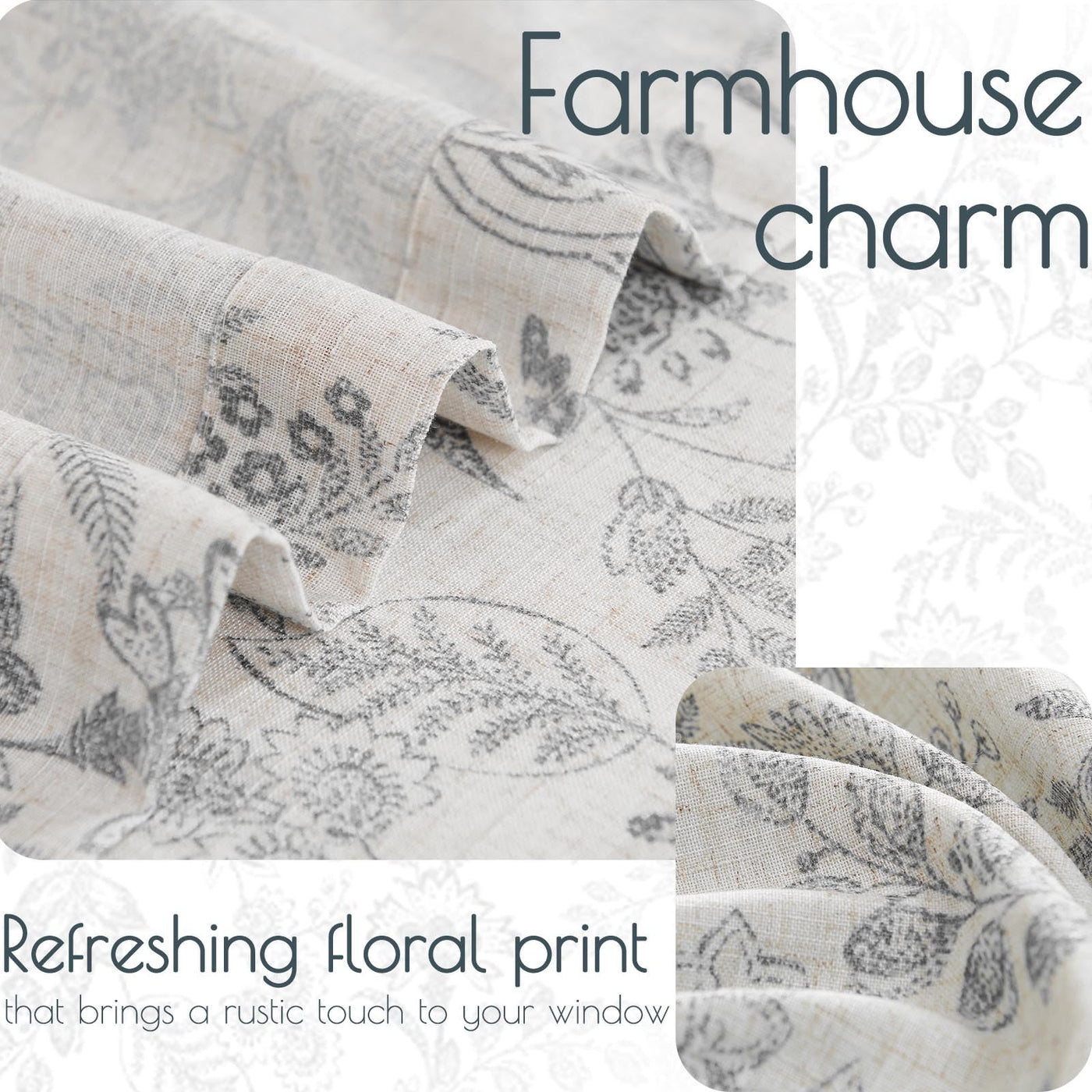 Jinchan Floral Kitchen Curtains 36 Inch Gray Linen Tier Curtains Farmhouse Cafe Curtains Country Botanic Small Window Curtains R