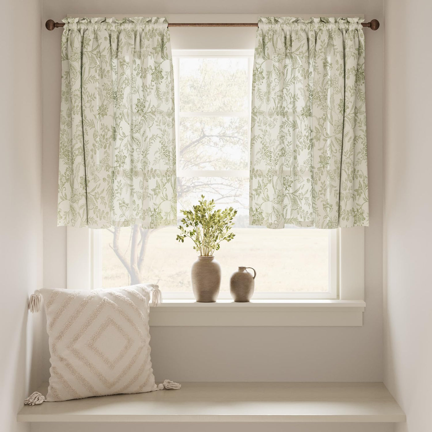 Jinchan Floral Kitchen Curtains 36 Inch Linen Tier Curtains Farmhouse Cafe Curtains Country Botanic Small Window Curtains Rod Po