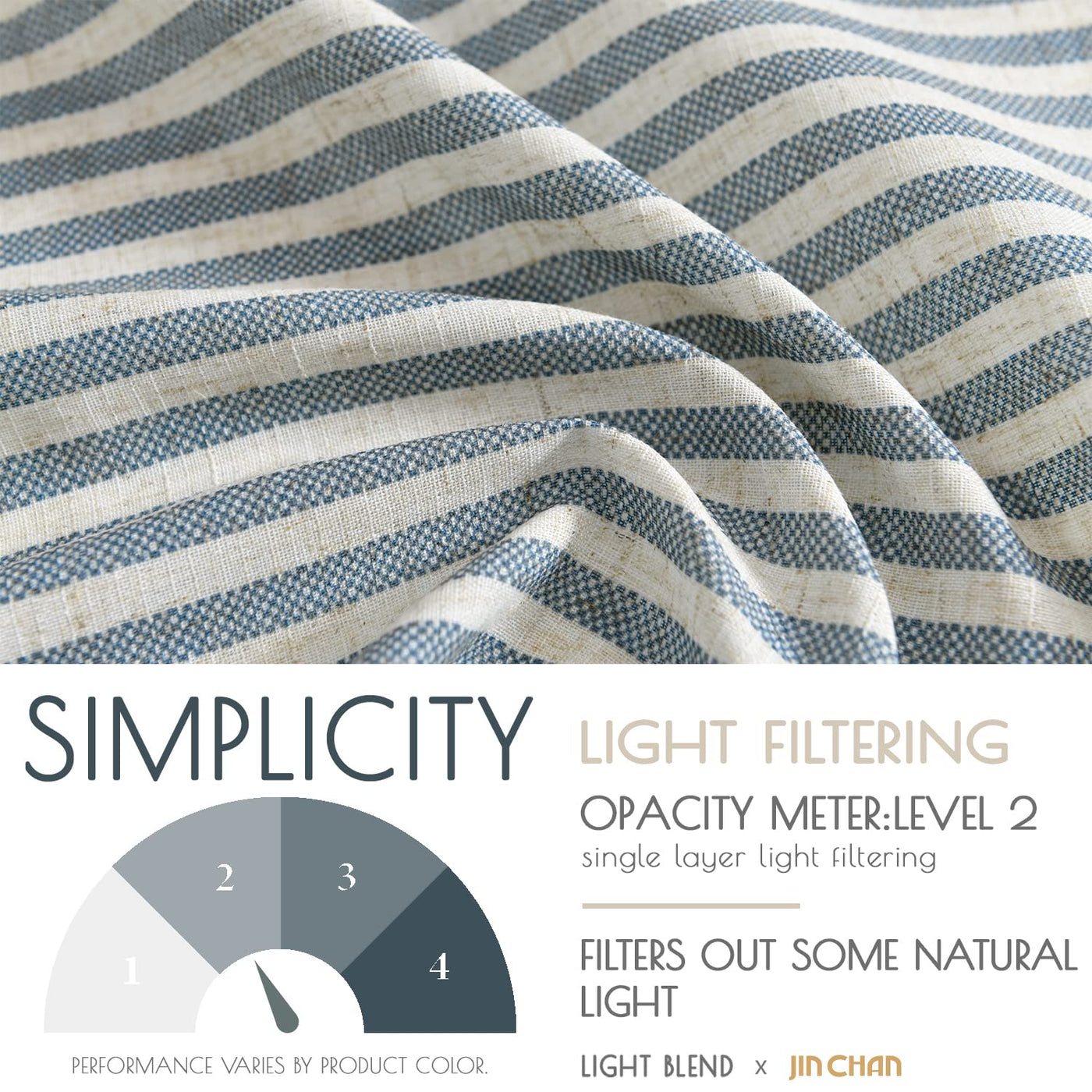 Q: What style do these curtains complement?A: The Jinchan Kitchen Curtains feature a farmhouse style with a striped design, making them suitable for rustic, country, and modern decor themes.