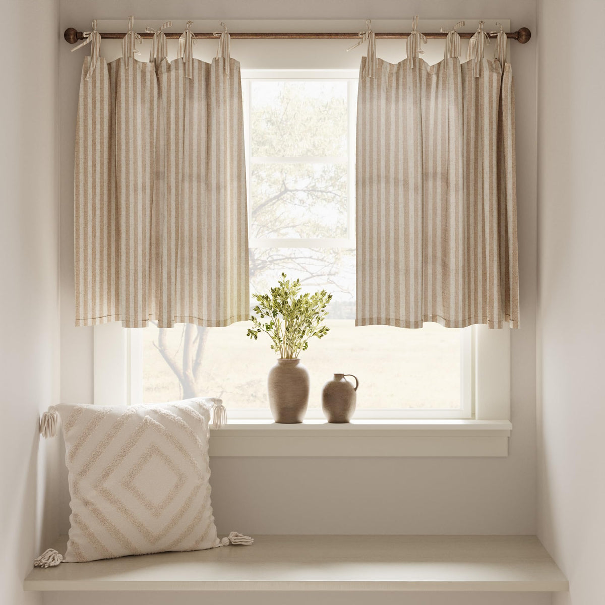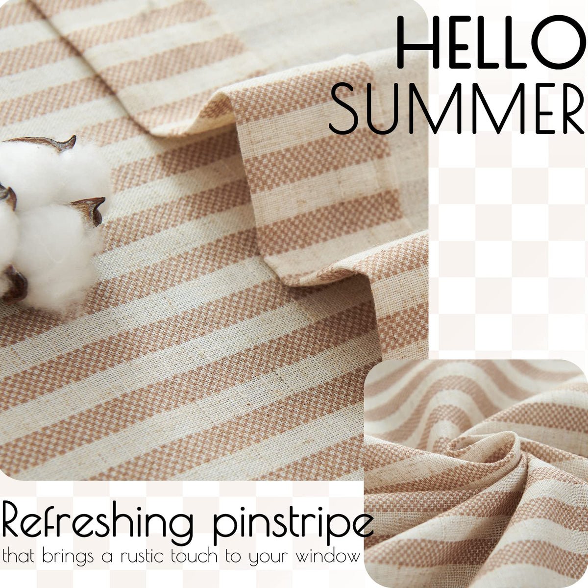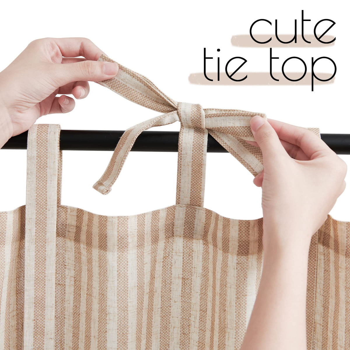 Jinchan Kitchen Curtains Striped Tie Top Linen Tier Curtains 24 Inch Length Short Curtains For Bedroom Living Room Bathroom Farm