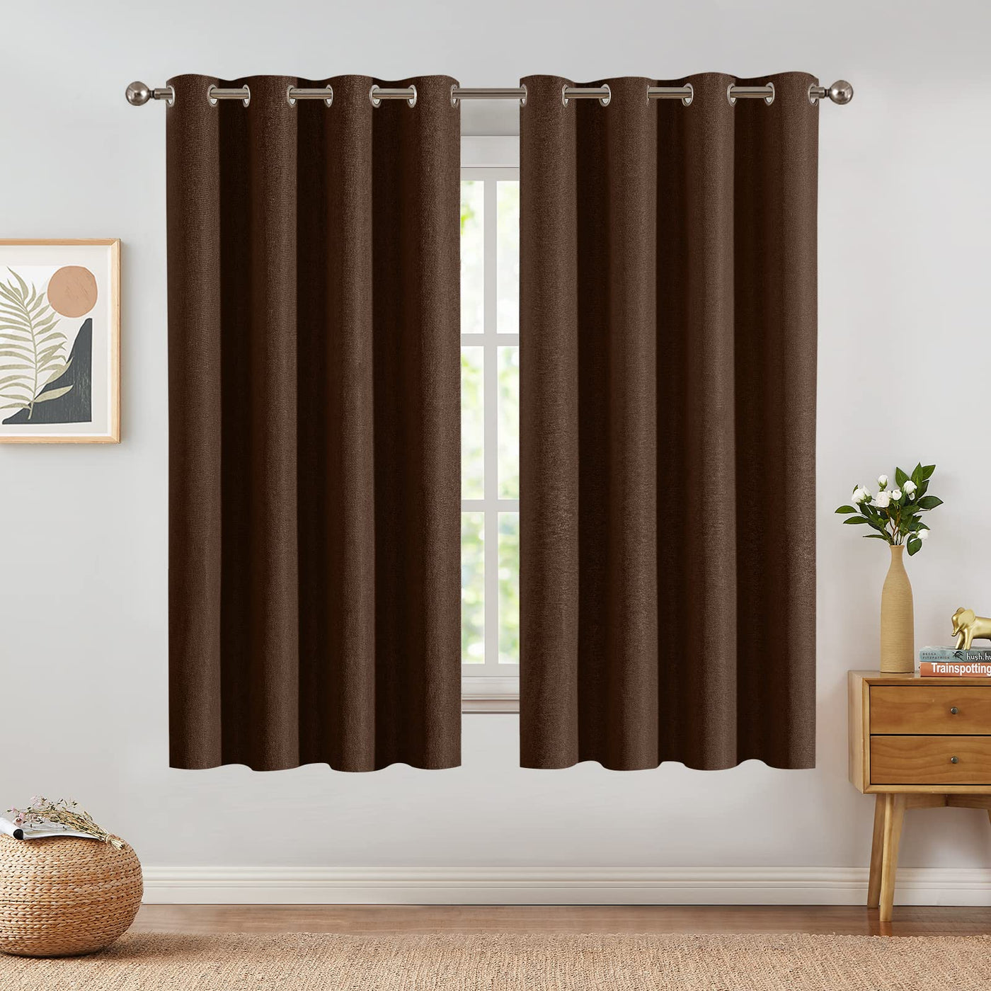 Jinchan Linen Textured Curtains Living Room Thermal Curtains Room Darkening Thermal Insulated Curtains 72 Inch Long Brown Curtains For Bedroom Drape Grommet Top 1 Panel