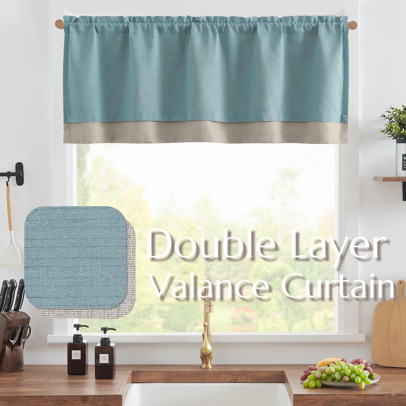Jinchan Linen Textured Valance Curtain Blackout Kitchen Valance For Windows 18 Inch Length Farmhouse Rustic Double Layer Valance For Living Room Laundry Cafe Overlay Valance Rod Pocket 1 Panel Blue