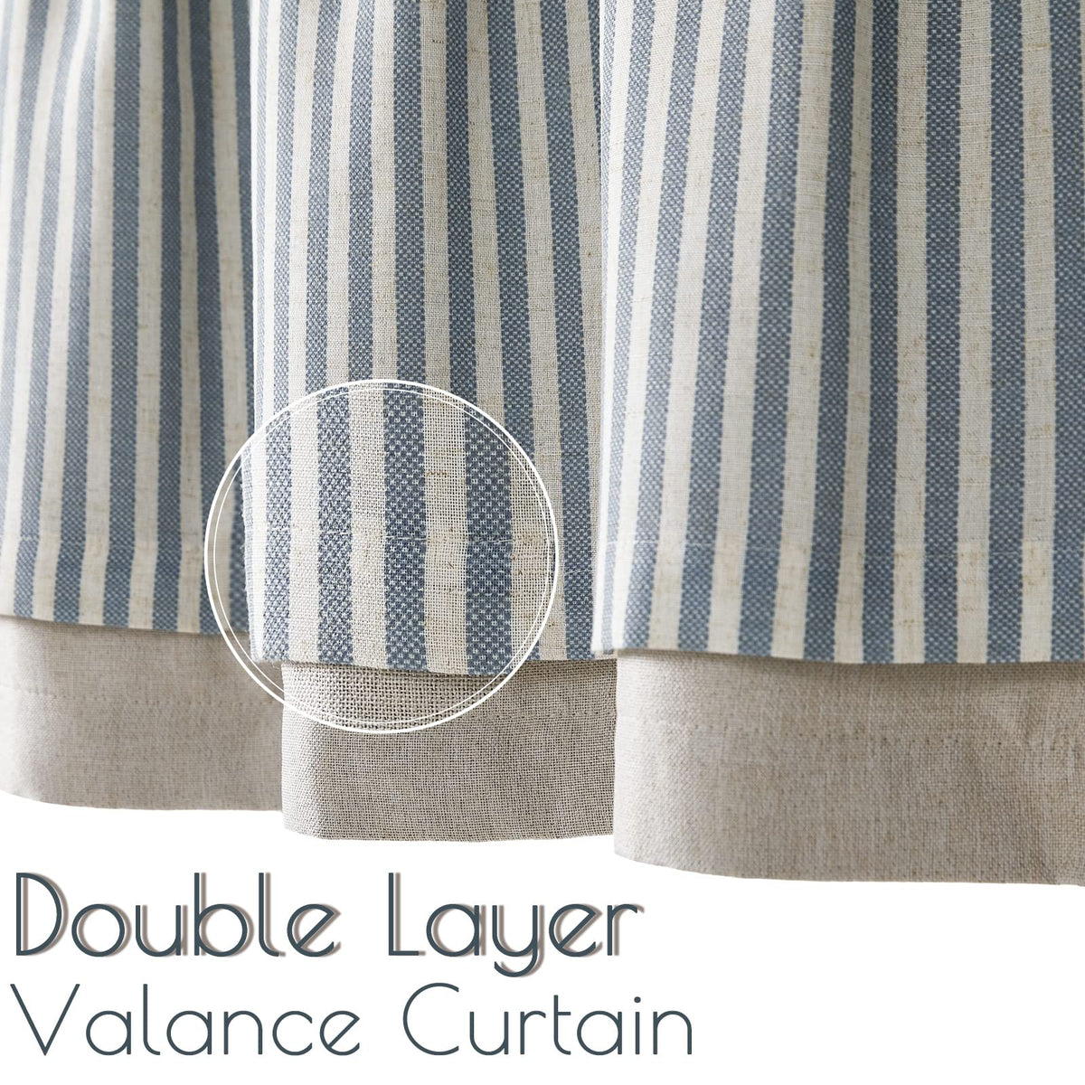 Jinchan Linen Valance Curtain Stripe Valance For Windows 16 Inch Blackout Kitchen Curtain Farmhouse Double Layer Valance For Living Room Laundry Ticking Stripe Valance Rod Pocket 1 Panel Blue On Beige