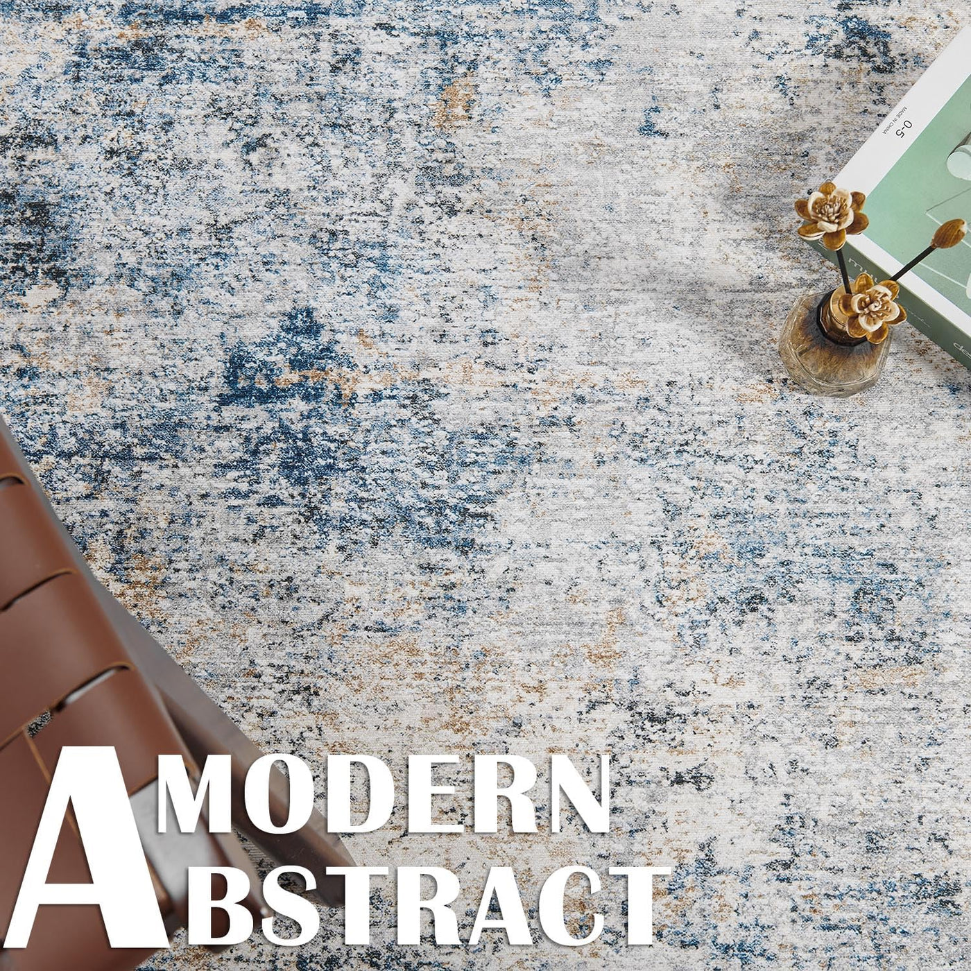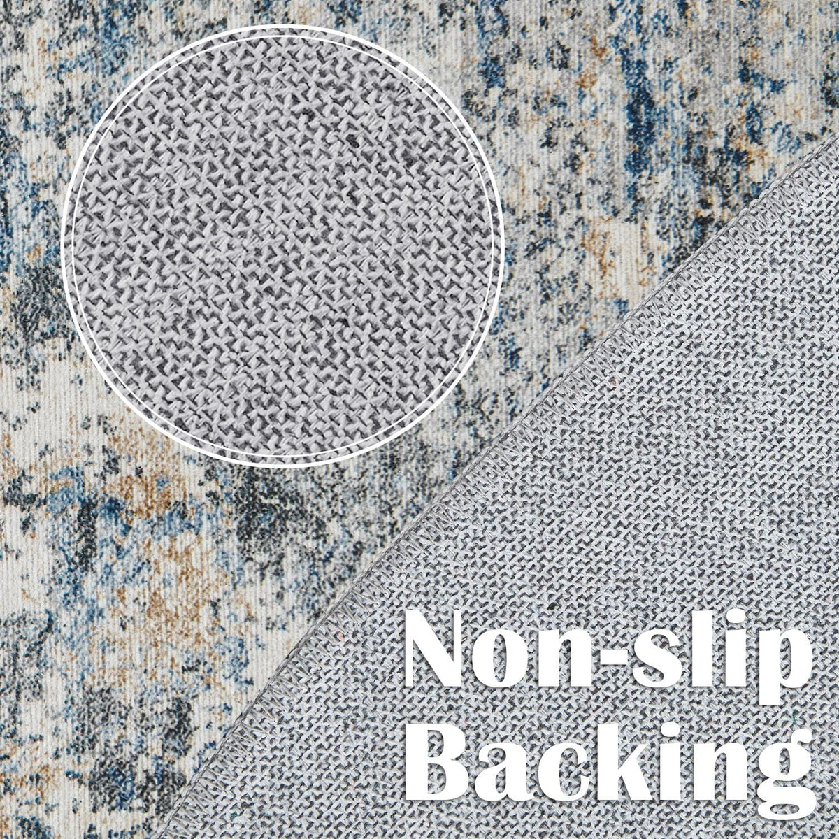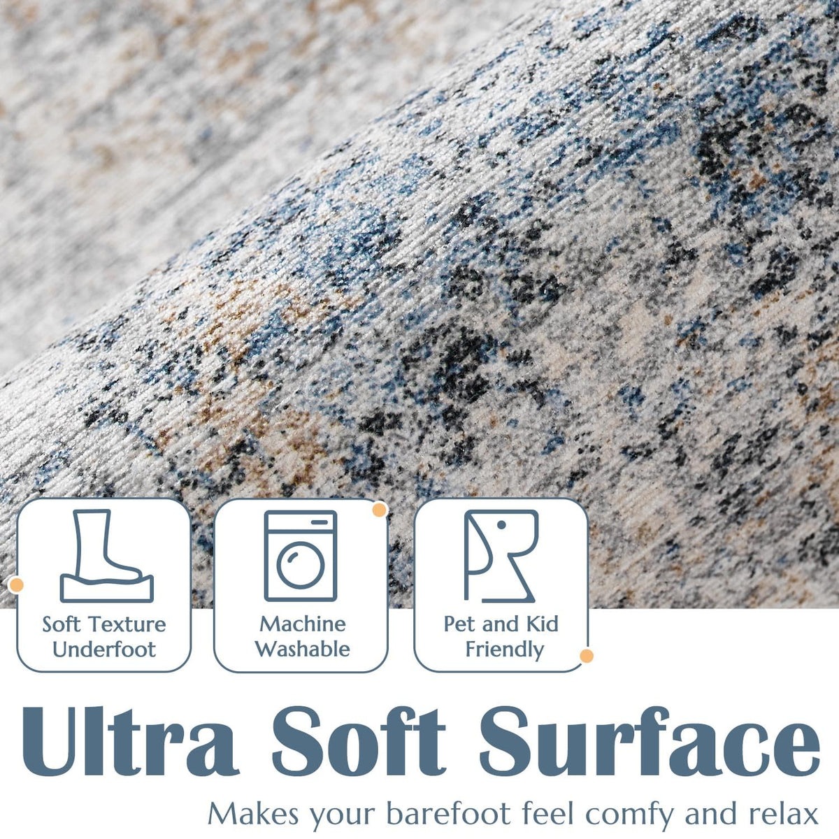 Jinchan Round Rug 4Ft Area Rug Indoor Modern Circle Rug 4' Round Washable Thin Rug Abstract Distressed Floor Mat Blue Multi Prin
