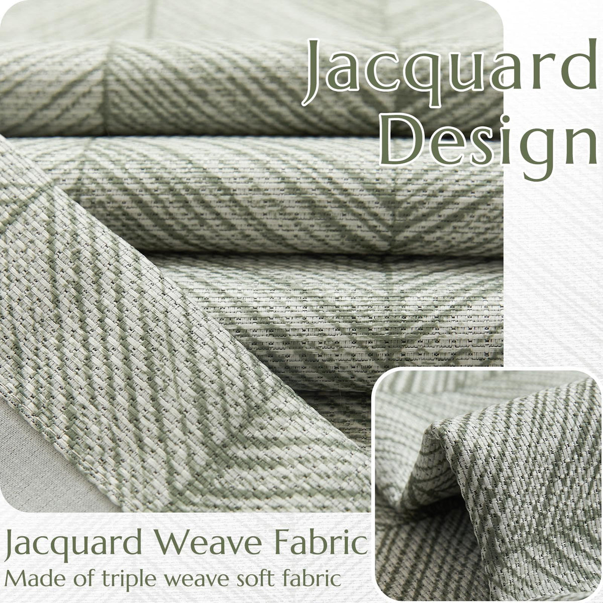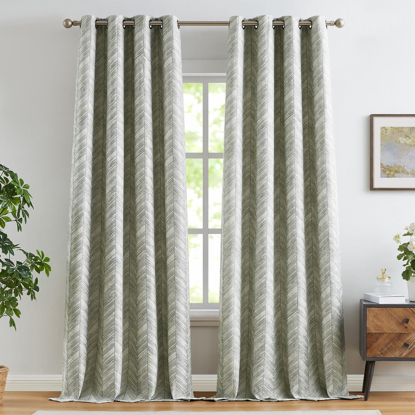 Jinchan Sage Green Printed Curtains 96 Inch Length For Living Room Grommet Jacquard Curtains With Herringbone Pattern Green And